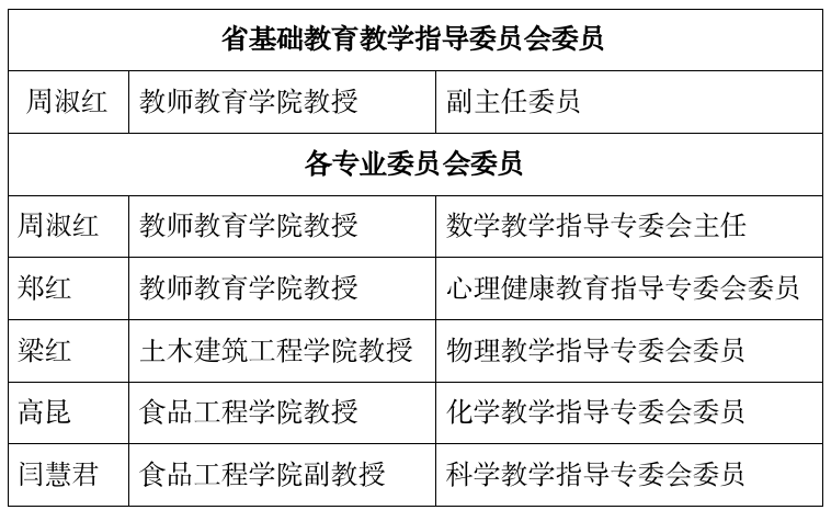 我校教师教育学院院长周淑红教授被聘为黑龙江省教育厅首届基础教育教学指导委员会副主任委员,周淑红等5位教师被聘为数学教学等专委会主任或委员。