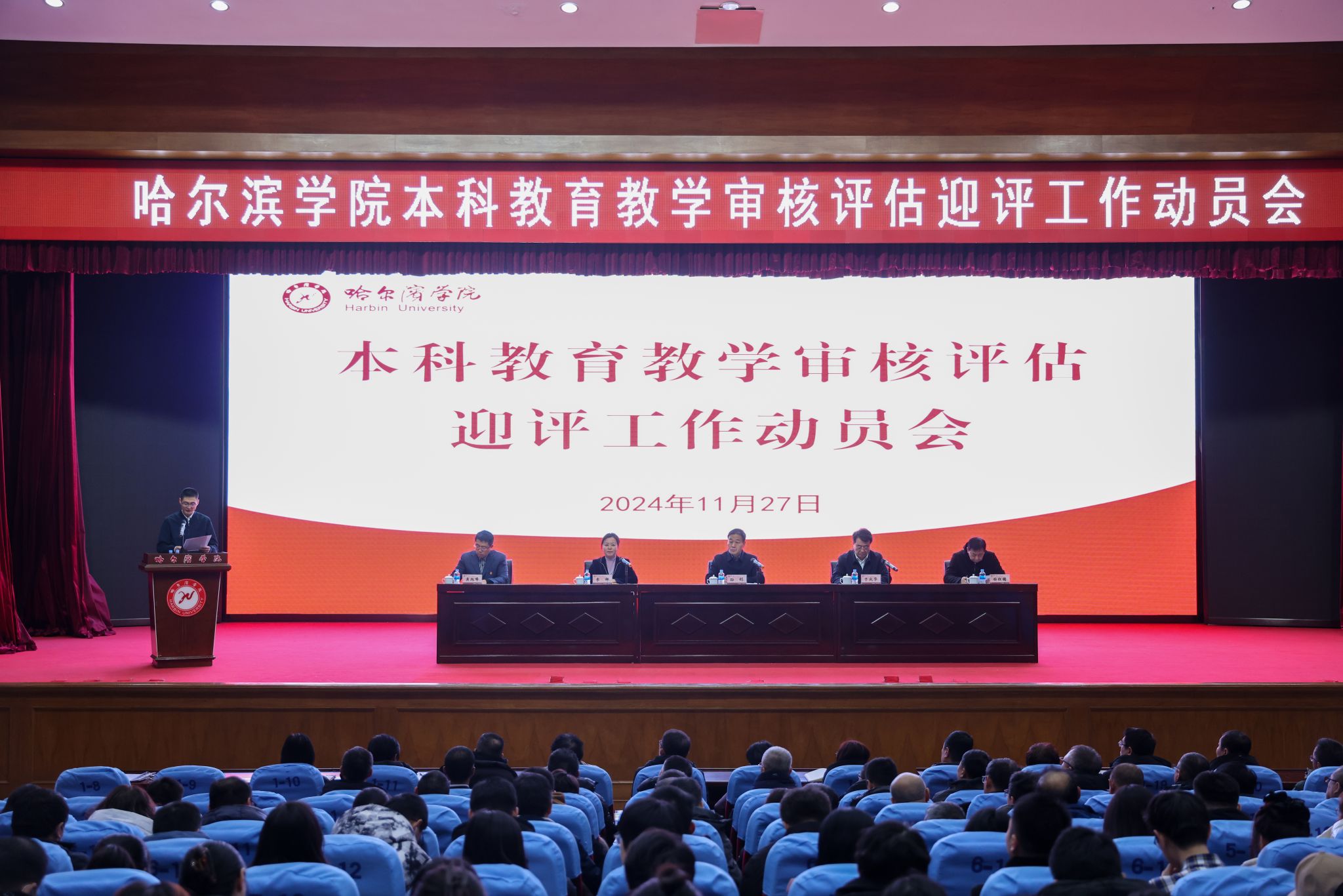 (文/常征)11月27日下午,学校在图书馆报告厅召开本科教育教学审核评估迎评工作动员会。党委书记孙钊、校长于成学出席会议并讲话。党委副书记李娜,副校长孙红镱、吴旭峰出席。全体中层干部,二级学院系主任、教研室主任、骨干教师、学生代表700余人参加会议。会议由李娜主持。