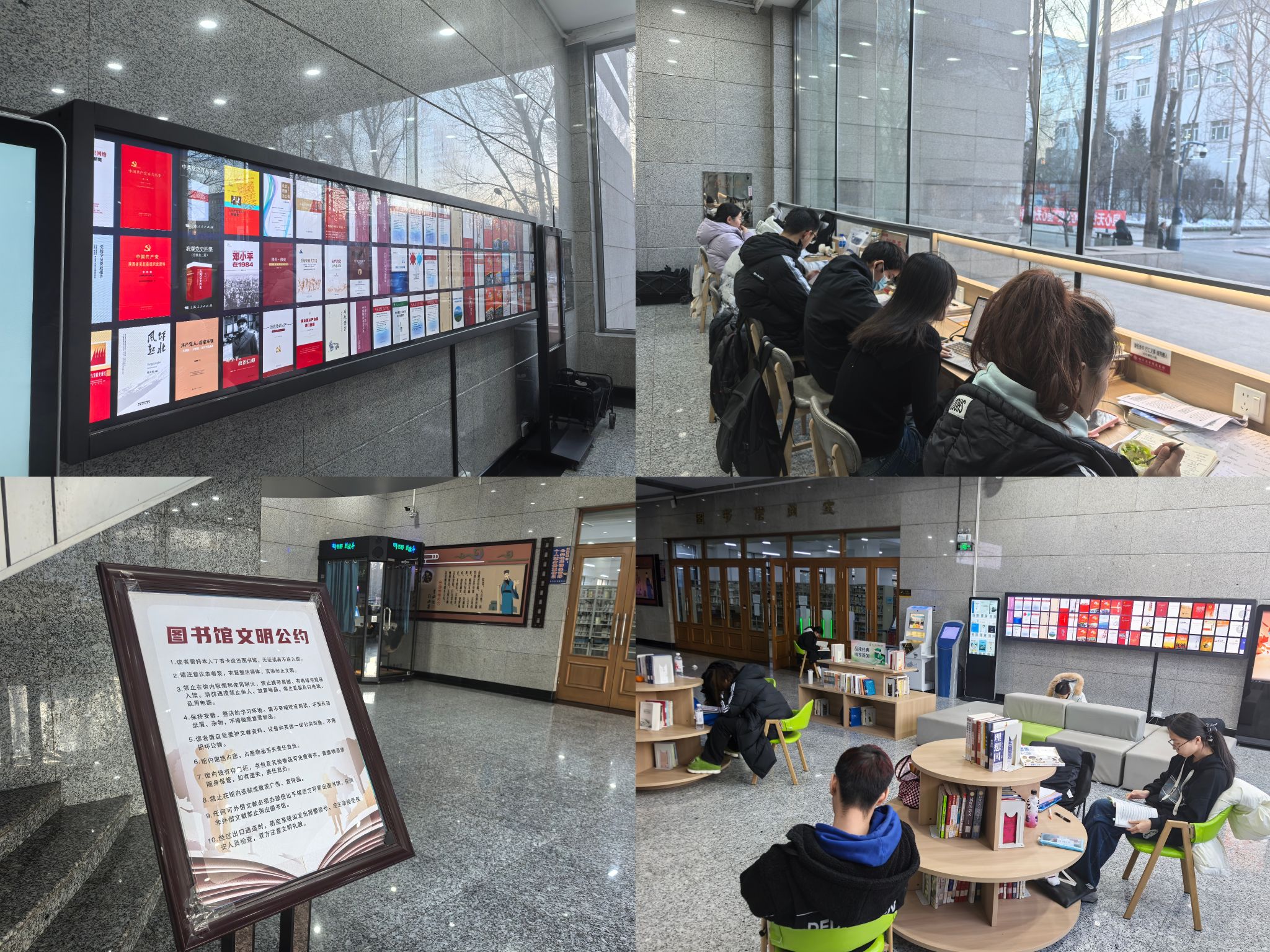 根据教育部要求,图书馆推进未来学习中心建设,通过空间改造和资源整合,创造智慧、多元、个性化学习空间。设置阅读区域。在一楼大厅设置集电子图书瀑布屏、歌德机和经典纸质图书于一体的阅读区域,配备沙发、吧台等设施,方便读者进行数字和纸质阅读;倡导文明行为。将“图书馆文明公约”制成展板置于显著位置,引导学生文明行为,保持图书馆整洁有序。