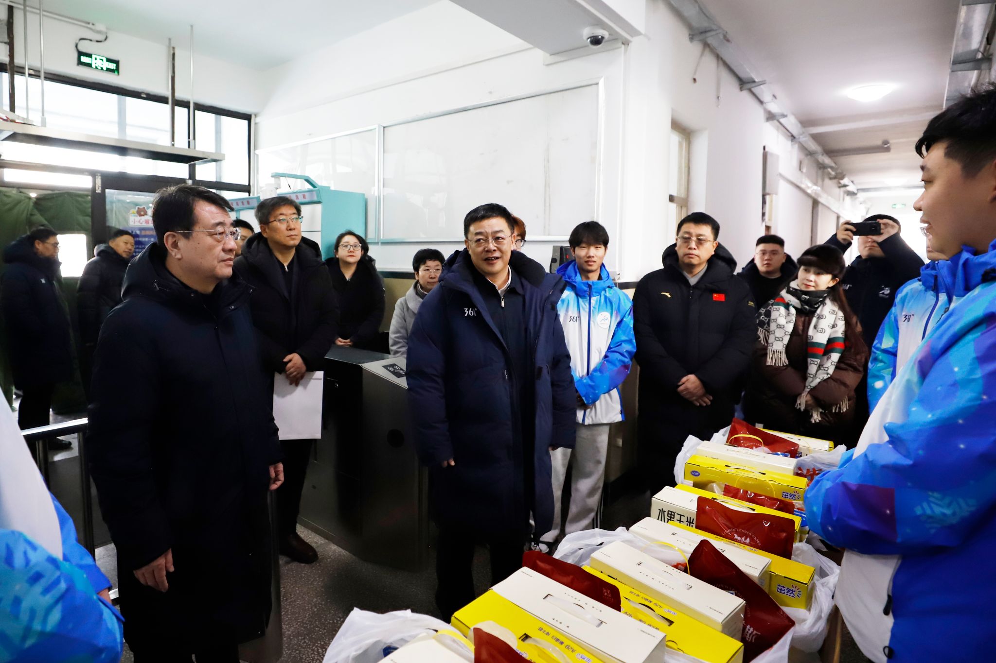 (文/张满)1月22日上午,亚冬会执委会人力资源与志愿者服务部(组织部)部长、市委组织部副部长李昕春一行3人来到我校亚冬会志愿者公寓,看望慰问假期留校志愿者,实地了解志愿者管理、服务和生活保障工作。校长于成学、副校长吴旭峰及相关职能部门负责人陪同走访。