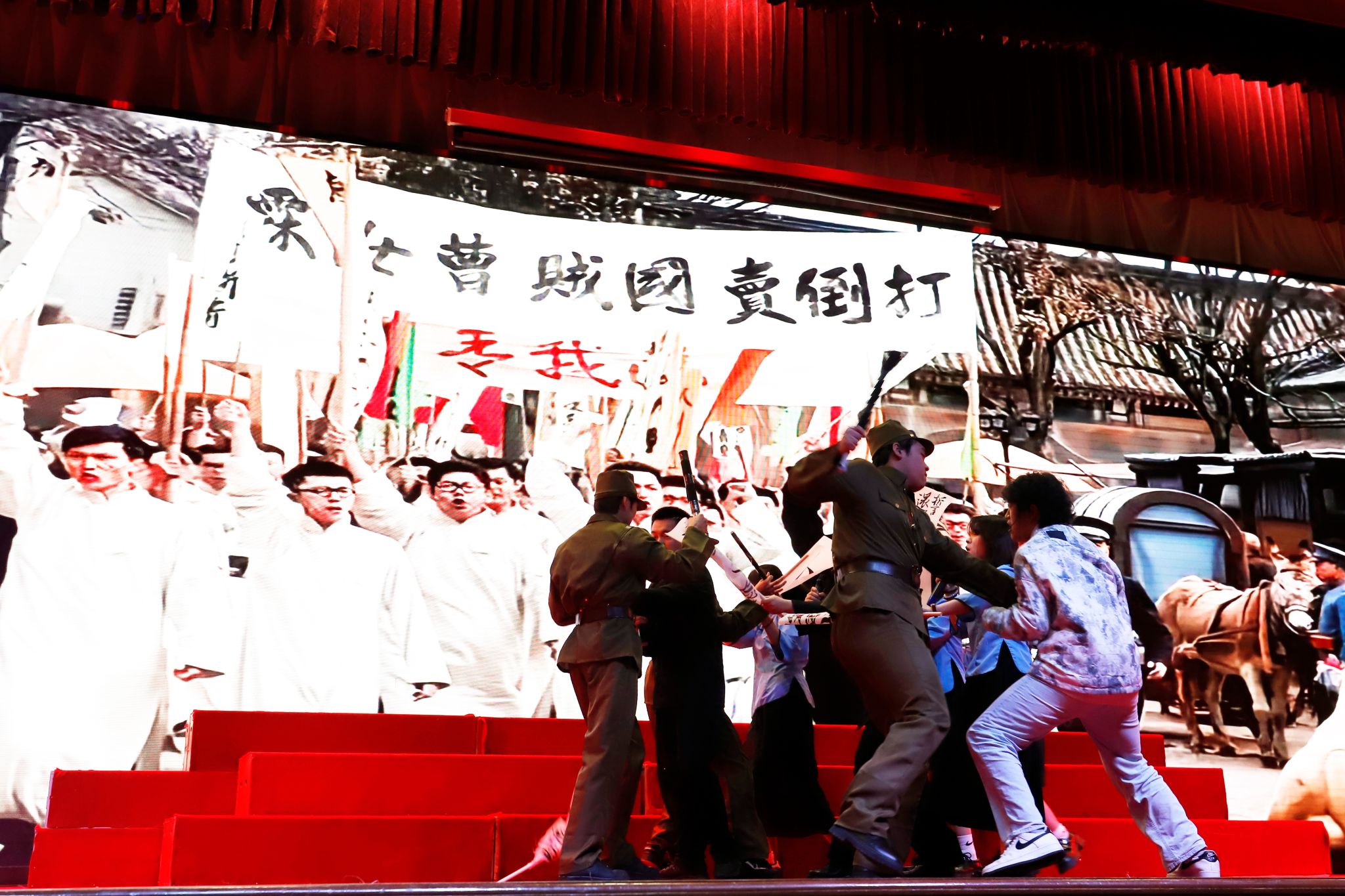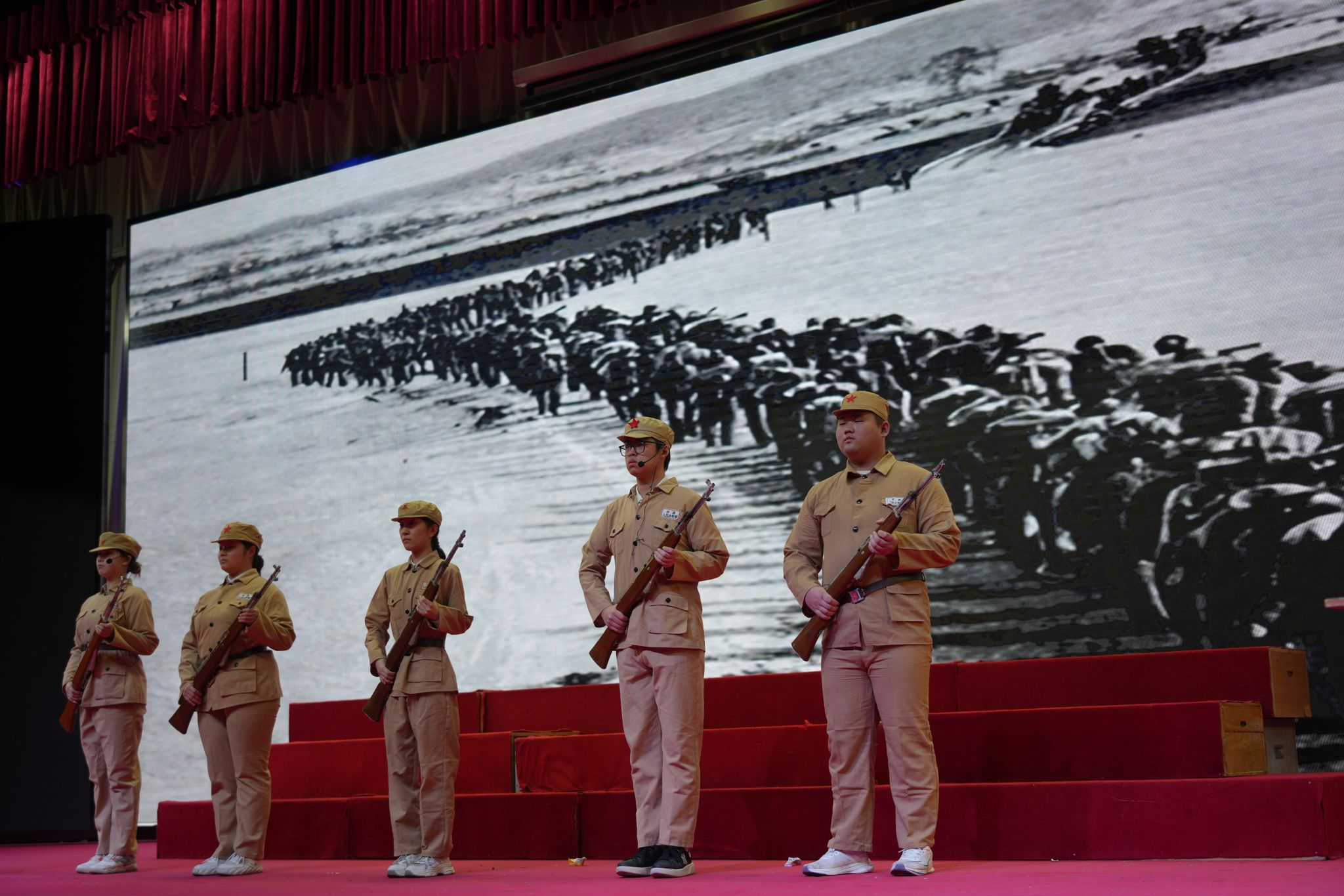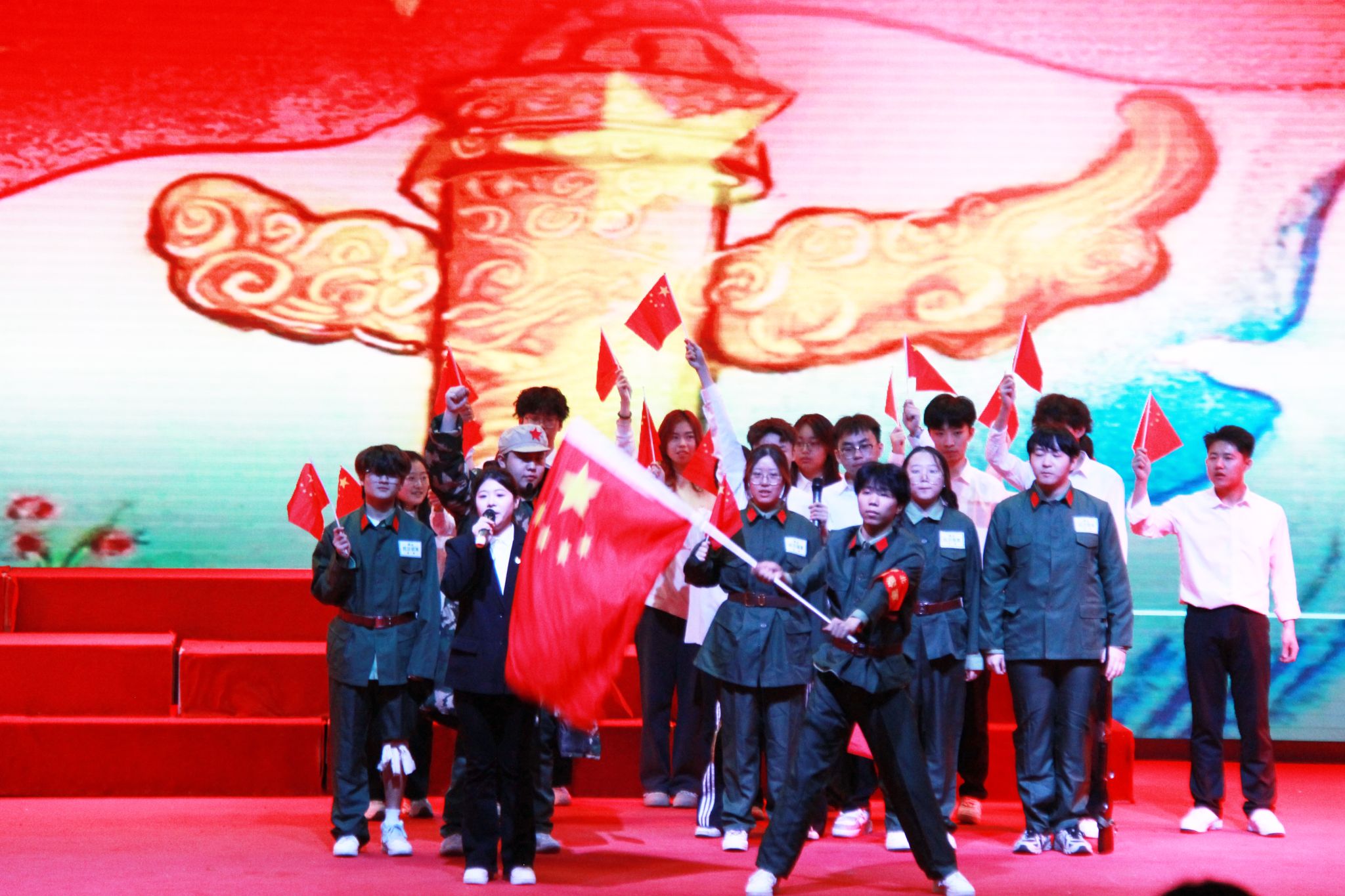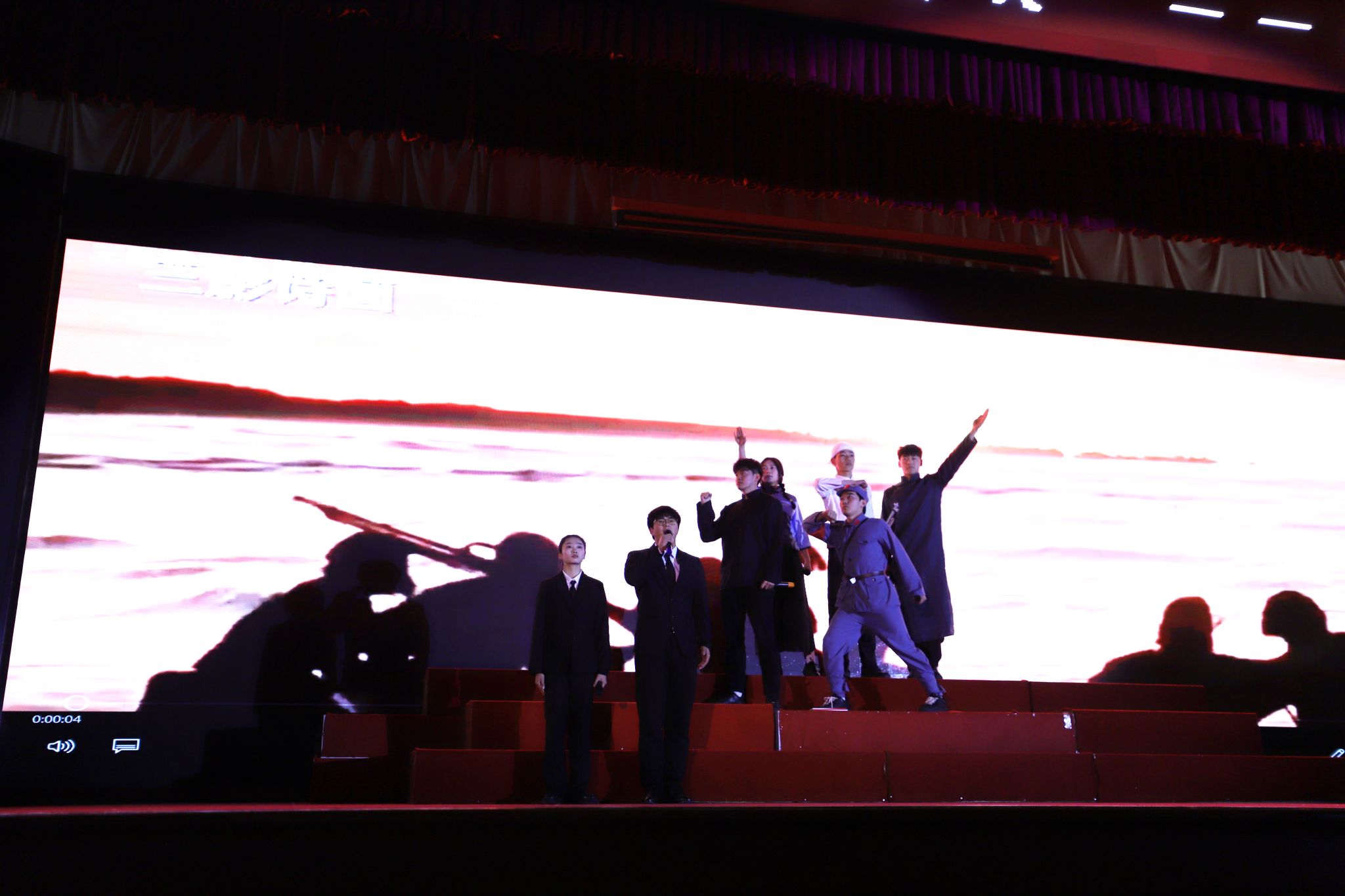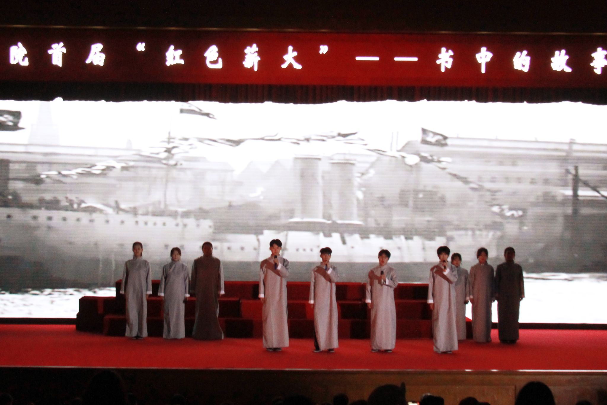 活动以红色经典著作为创作蓝本,通过情景剧、诗朗诵、沙画等多元艺术表达形式展开跨时空对话。学生展演团队创排的《如愿》《乌斯浑河的回声》《红星照耀中国》等12部作品,生动再现革命先辈救亡图存的壮丽史诗,沉浸式的视听叙事让历史场景跃然眼前,感人至深的情节设计引发观众强烈共鸣,多次响起热烈掌声。