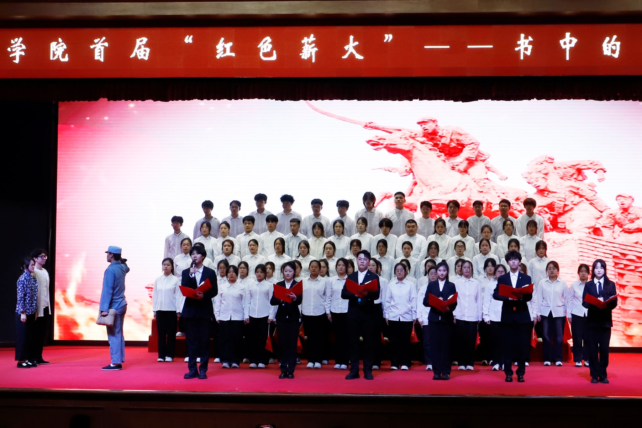 (文/卢涛)在第三十个世界读书日即将到来之际,4月16日,学校在图书馆报告厅举办首届“红色薪火”书中的故事展演活动。校党委书记孙钊、党委副书记李娜、副校长吴旭峰、校长助理潘俊豪出席活动。党委组织部、党委宣传部、党委统战部、学生处、教务处、保卫处、图书馆负责同志,各二级学院党委(党总支)书记及师生代表600余人参加活动。