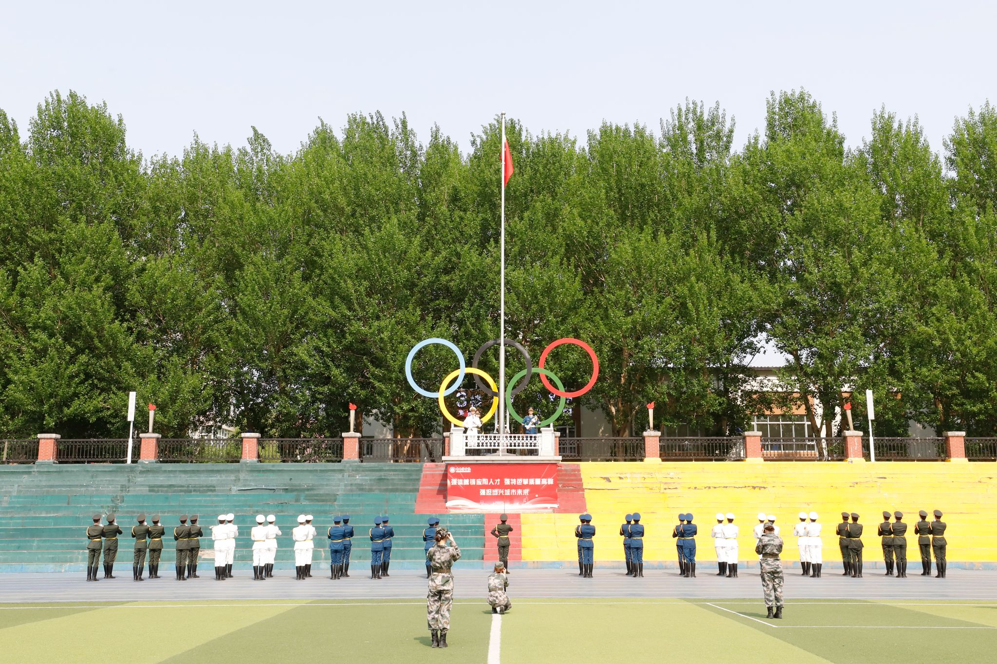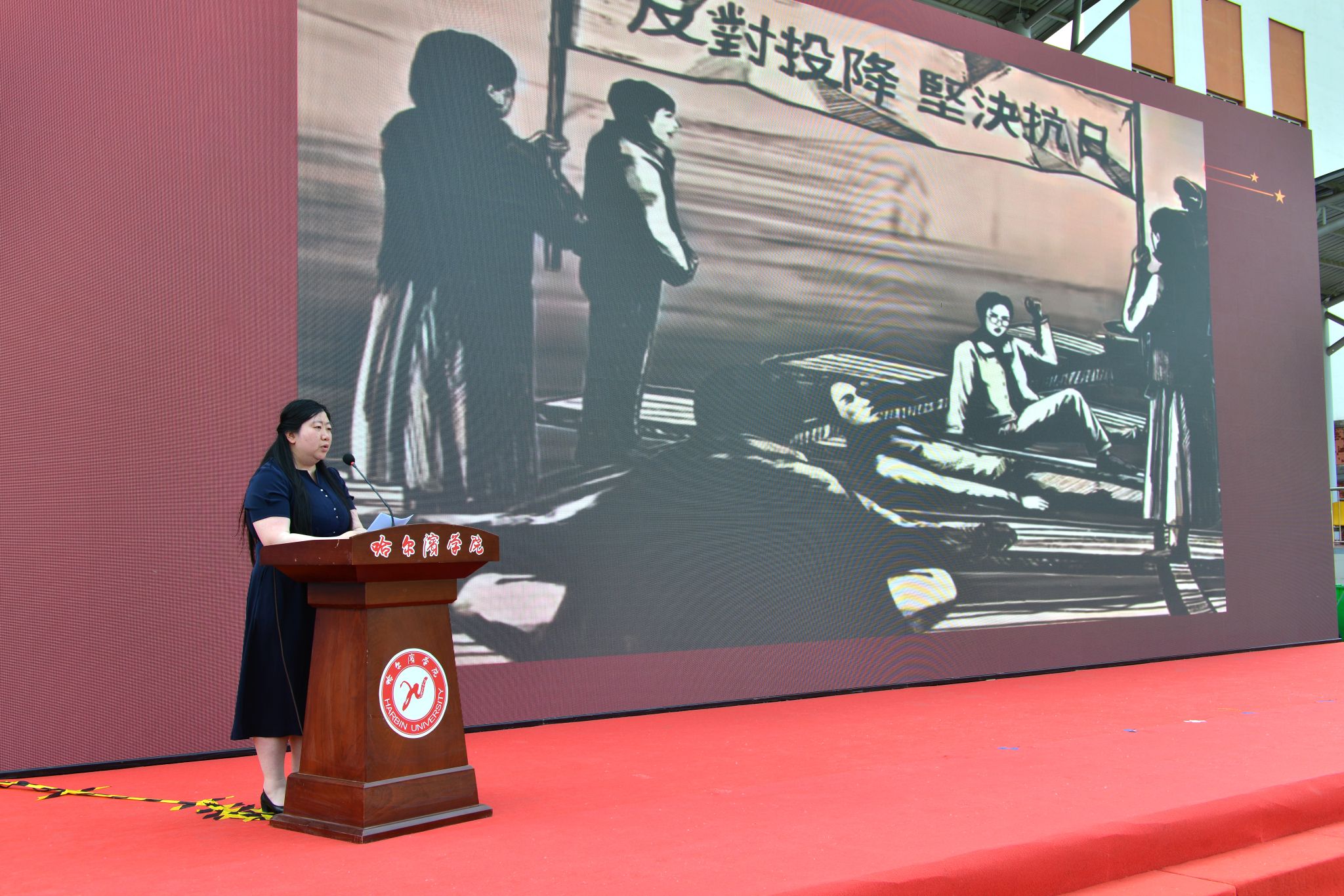 哈尔滨市政协副主席胡宝忠,校长、党委副书记于成学,党委副书记李娜,副校长吴旭峰,黑龙江省教育厅学生处二级调研员郑凯,南岗区武装部政委张磊夫,东北抗日联军老战士子女,合作共建中小学校长等出席了活动。学校相关职能部门负责人,各二级学院党委(党总支)书记、全体辅导员,毕业生代表,在校学生代表参加了活动。仪式由学生处(武装部)处长于迪主持。