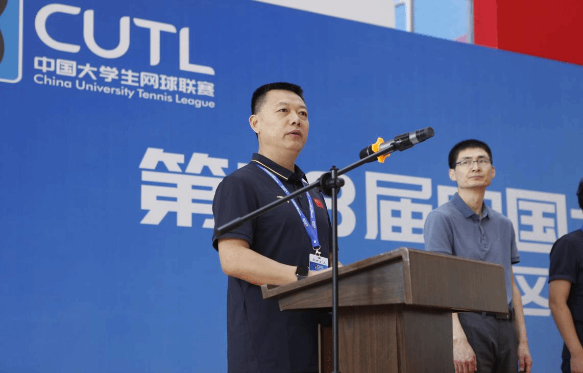 于少鹏在致辞中首先对莅临现场的各位嘉宾及各参赛代表队表示热烈欢迎,并对长期支持我校体育事业发展的兄弟院校致以诚挚谢意;其次向与会代表介绍了我校近年来在体育工作领域取得的显著成效;最后表示希望通过此次赛事为各高校搭建交流平台,为网球运动发展和体育强国建设贡献我校力量。王凯军对我校的精心筹备工作给予高度评价,并预祝赛事取得圆满成功。