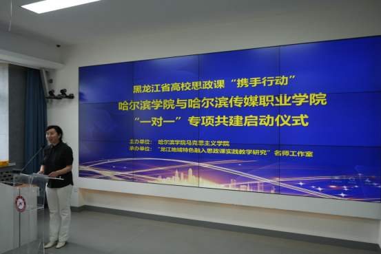 马克思主义学院院长李景瞳、哈尔滨传媒职业学院思政处王虹主任分别代表两所学校讲话。