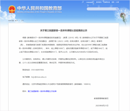 (文/马彦龙)近日,教育部高等教育司公布了第三批国家级一流本科课程认定结果,我校王晓迪教授主持的《地统计学》和王永红副教授主持的《概率论与数理统计》2门课程被认定为国家级一流本科课程。截至目前,我校累计获批国家级一流本科课程5门,省级一流本科课程44门。