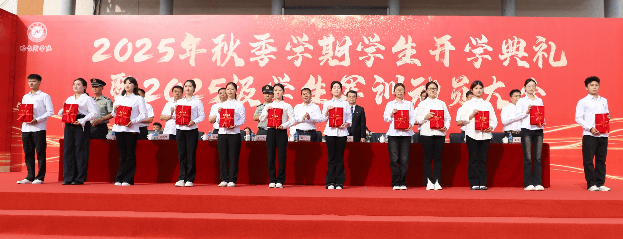(文/卢涛)在中国人民抗日战争暨世界反法西斯战争胜利80周年到来之际,9月3日上午,哈尔滨学院2025年秋季学期学生开学典礼暨2025级学生军训动员大会在学校田径运动场举行。学校党委书记孙钊,校长、党委副书记于成学,校领导李娜、孙红镱、于少鹏、吴旭峰、杨铁岩、陶成云,校长助理潘俊豪出席大会。各职能部门负责人、二级学院党政负责人、副书记,全体辅导员、承训教官,教师代表、在校学生代表及2025级学生齐聚一堂,共同见证这一庄严热烈的时刻。大会由学校党委副书记李娜主持。