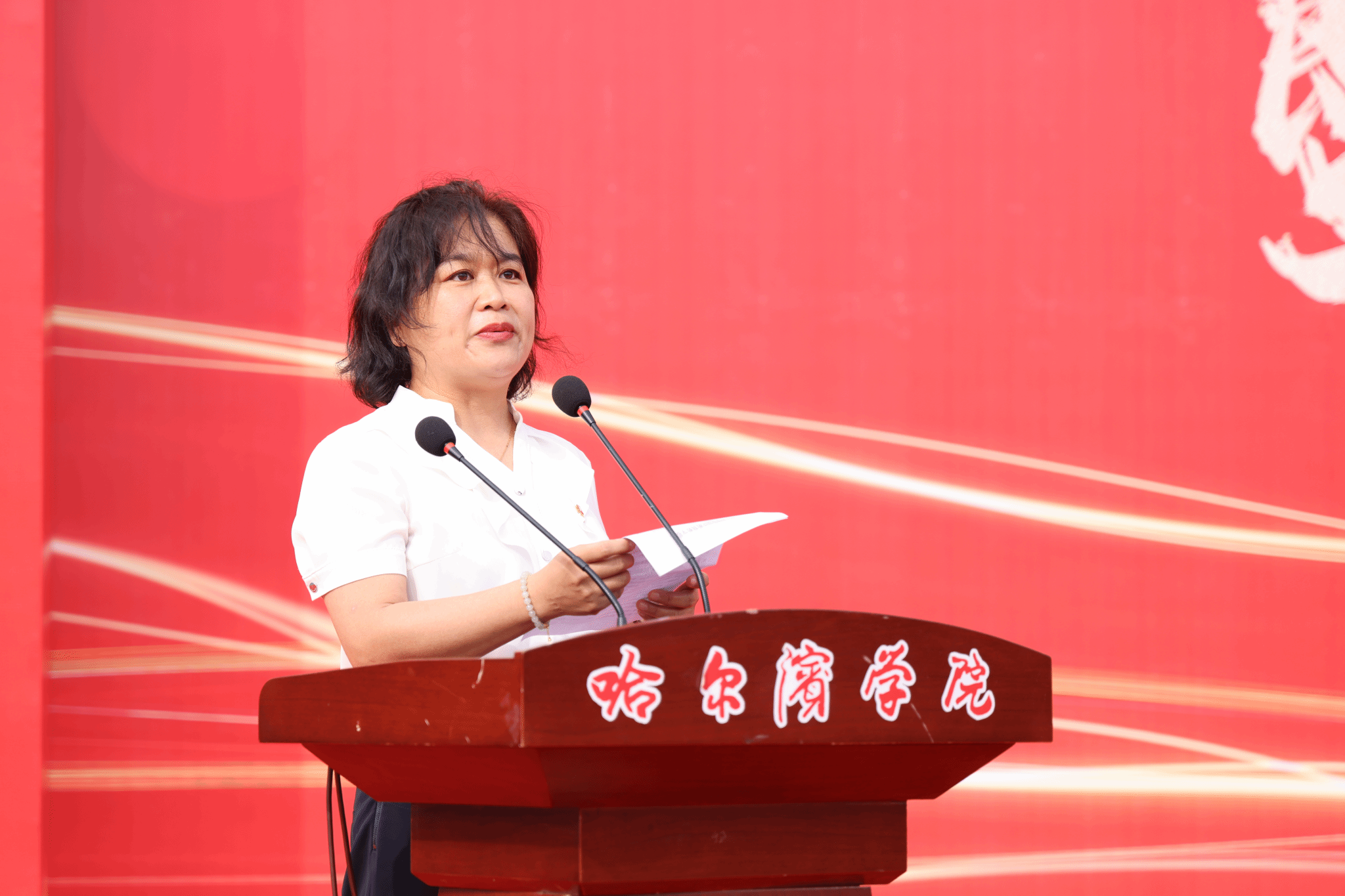 李娜宣读了《哈尔滨学院2025年军训旅任职决定》,并指出牢记历史、以史为鉴、不忘初心,磨炼意志品质、锤炼优良作风,不断增强国家安全意识,争做有理想、敢担当、能吃苦、肯奋斗的新时代好青年,用青春智慧热血书写无悔人生,努力成长为堪当民族复兴重任的时代新人。