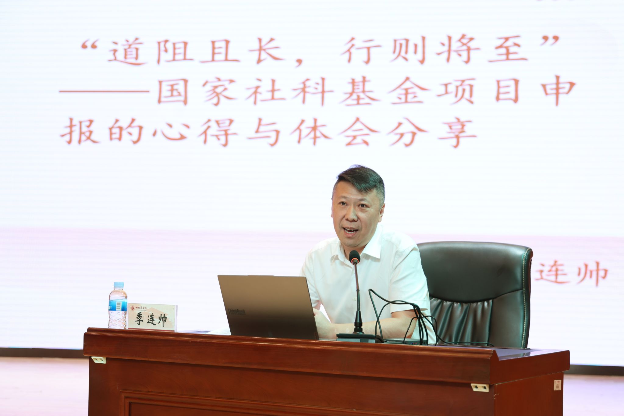 经验交流环节,季连帅教授分享了国家社科基金项目申报宝贵经验,王晓迪教授介绍了国家级一流课程《地统计学》建设历程与创新实践,黄永辉教授总结了教学成果奖的申报心得,宫显云教授交流了课程思政的实践路径,副校长孙红镱以《AI推动高等教育的创新和变革》为题作报告,前瞻性地探讨了人工智能赋能教育发展的广阔前景。