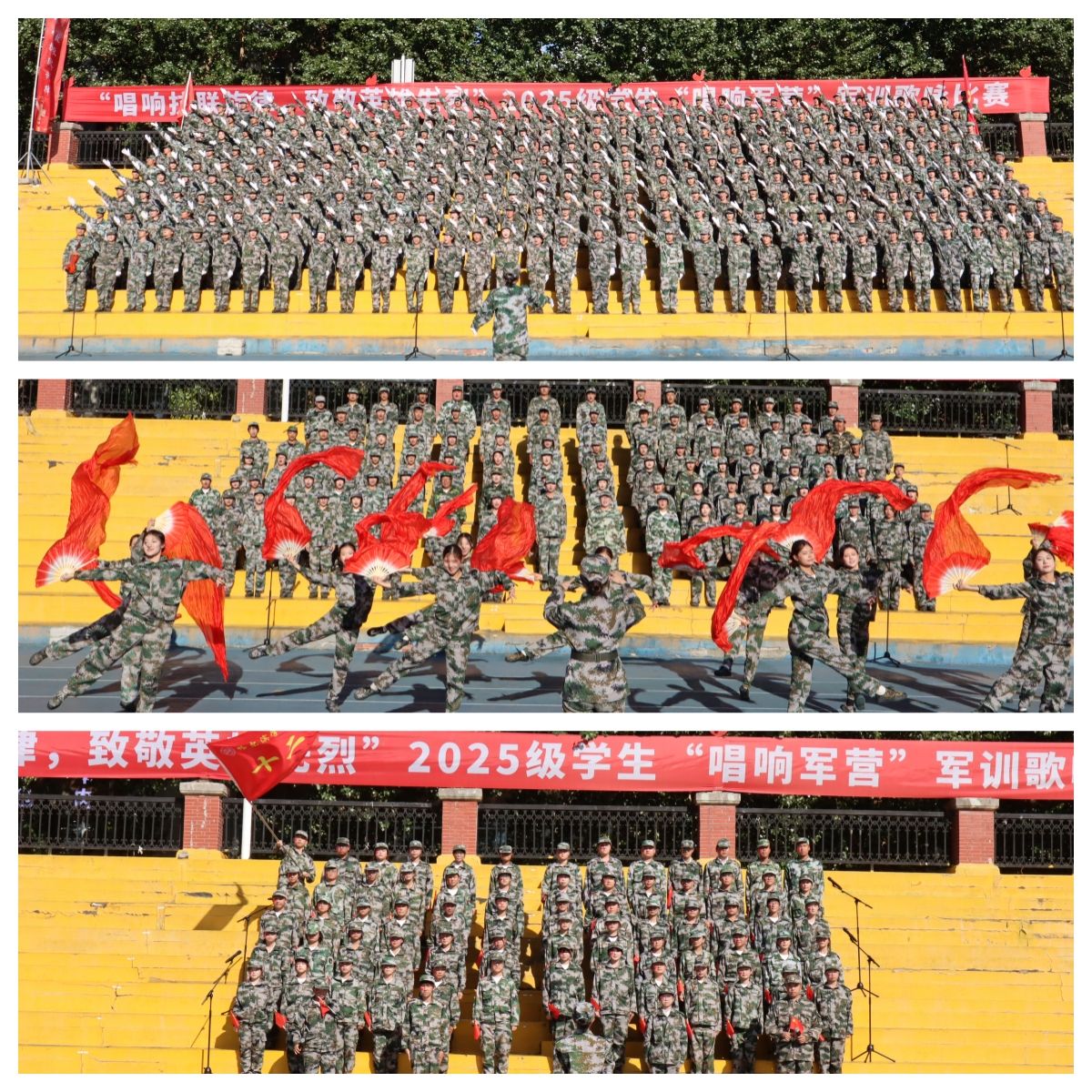 (文/李一宁)9月10日下午,由校团委主办的“唱响抗联旋律,致敬英雄先烈”2025级学生“唱响军营”军训歌咏比赛在学校运动场举行。校党委副书记李娜、副校长吴旭峰参加活动并颁奖。党委组织部部长丛军、团委书记张玉娟、党委宣传部副部长朱明、学生处副处长庞哲、军训旅副旅长张凌超、副参谋长黄明宇以及各营营长、教导员、连长、指导员、各学院分团委书记和学生代表共同观看比赛。音乐与舞蹈学院音乐表演专业声乐教研室主任修雪卿,音乐学专业副主任韩杨,声乐教师包园、赵文佳,音乐表演专业声乐教师邱洋洋担任本场比赛的评委。