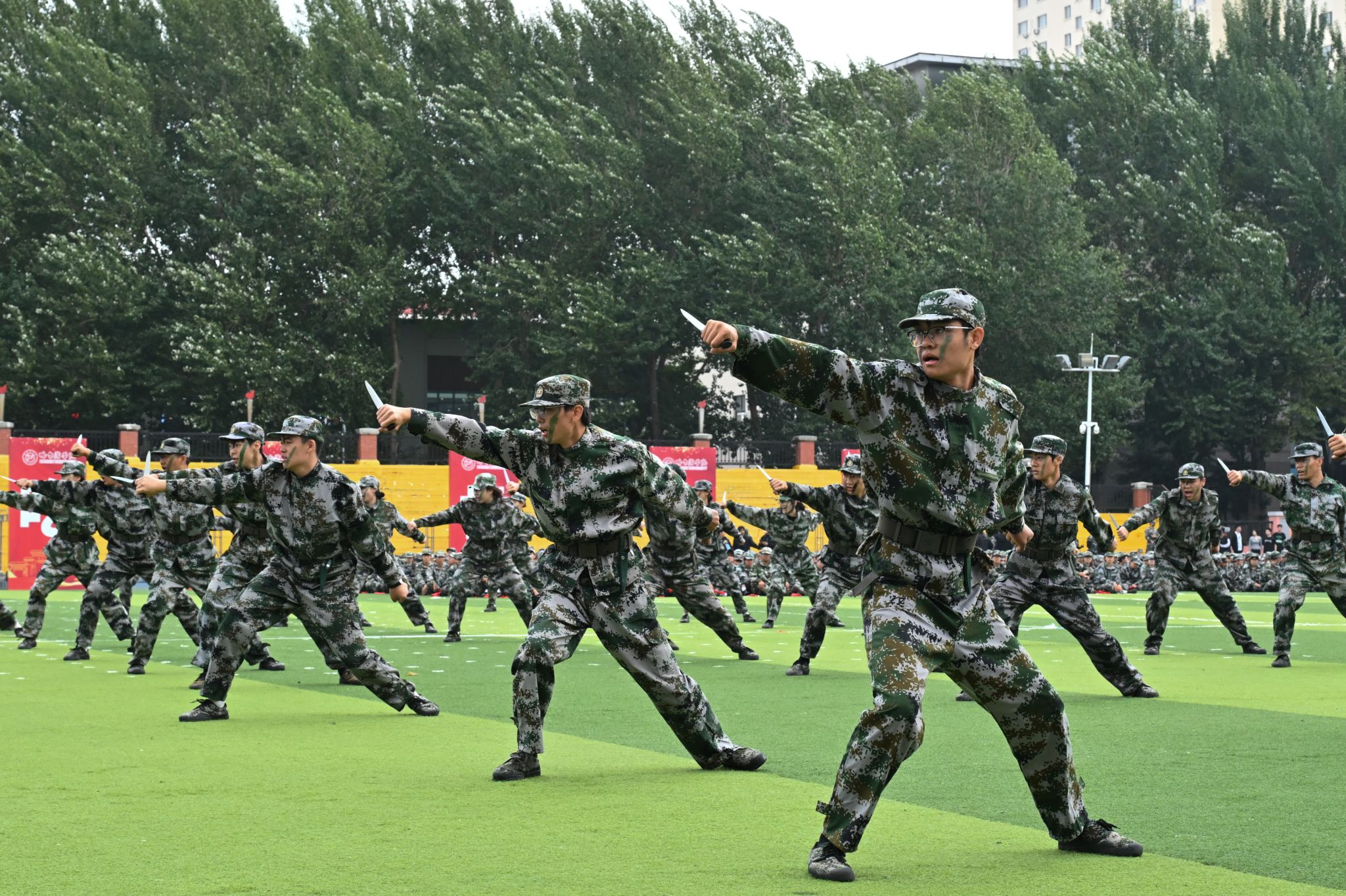 精彩的军训成果汇报表演将大会气氛推向高潮。刚劲有力的擒敌拳、干净利落的匕首操、紧张逼真的战术表演,赢得了现场阵阵掌声。大型情景演出《山河回响,接力复兴》,以恢弘的叙事和深情的演绎,展现了新时代青年学子的家国情怀与使命担当,引发了全场师生的强烈共鸣、赢得了阵阵掌声。大会在《人民军队忠于党》《歌唱祖国》大合唱中圆满落下帷幕。