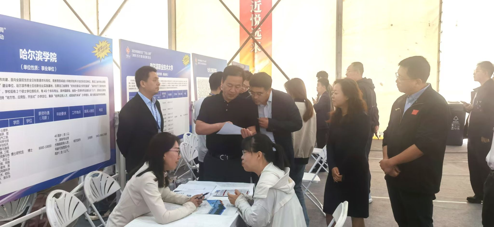 (文/李欣妍)9月16日,2025年度哈尔滨“丁香人才周”(秋季)引才现场招聘活动在冰雪大世界举行,我校组织2026届毕业生600余人赴活动现场求职,全力促进2026届毕业生尽早就业。校党委书记孙钊,党委副书记李娜、副校长吴旭峰,人事处、就业指导处负责同志及工作人员,各学院2026届毕业班辅导员参加招聘活动。