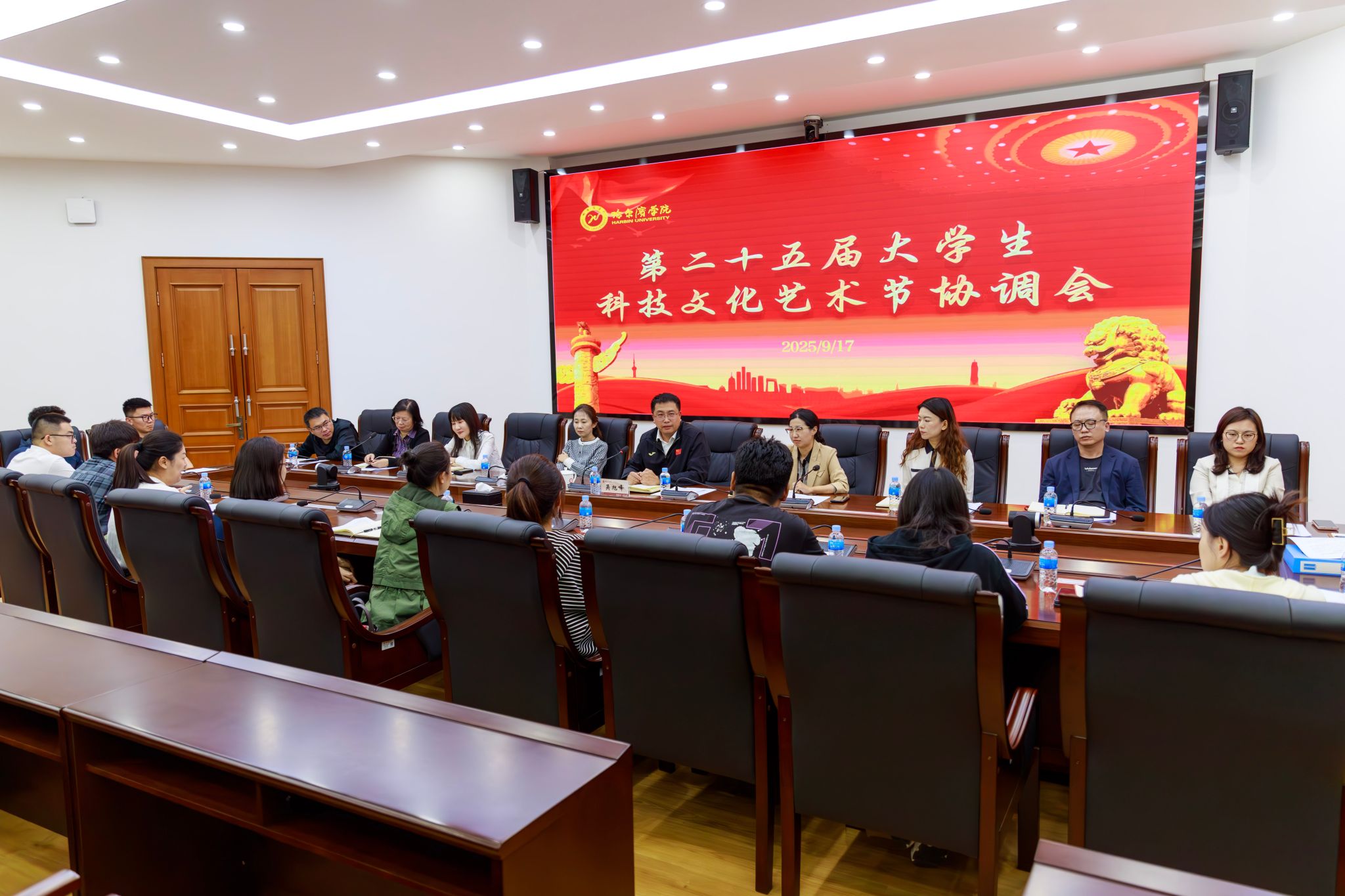 吴旭峰就高质量推进本届科技文化艺术节提出四点要求:一是强化品牌意识,突出主题引领。科技文化艺术节作为我校持续二十五年的品牌育人工程,各学院应在传承中守正创新,深度融合红色文化、冰雪文化等时代元素,提升活动的思想性与辨识度。二是科学统筹时间安排,确保有序推进。本届艺术节历时两个月,活动密集、覆盖面广,须合理规划日程,推动资源共享、协同发展。三是注重人才梯队建设,强化育人功能。要以艺术节为契机,前瞻性布局学生骨干培养体系,通过项目化运作发现人才、锻炼队伍,构建可持续发展的活动组织人才储备机制。四是加强部门协同,提升统筹效能。组委会要切实发挥统筹作用,严格按照《实施方案》履职尽责,强化跨部门协作机制,细化任务分工,精准指导各项活动落地落实。