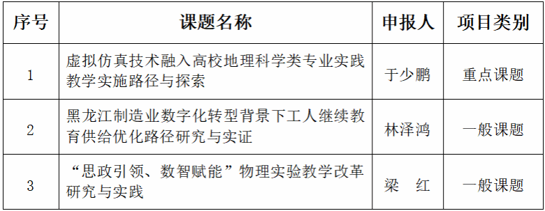 (文/李彦萍)为深入贯彻落实《教育强国建设规划纲要(2024—2035年)》和三年行动计划,不断推进有组织科研,以高质量的学术研究服务教育强国建设,中国高等教育学会于2025年5月启动“2025年度高等教育科学研究规划课题”申报工作,学校科技处及时组织教师申报。经资格审查、匿名评审,评审结果于近日揭晓,我校获批中国高等教育学会“2025年度高等教育科学研究规划课题”3项,其中,我校于少鹏教授申报的《虚拟仿真技术融入高校地理科学类专业实践教学实施路径与探索》课题喜获重点课题立项,系我校首次重点课题获批立项。