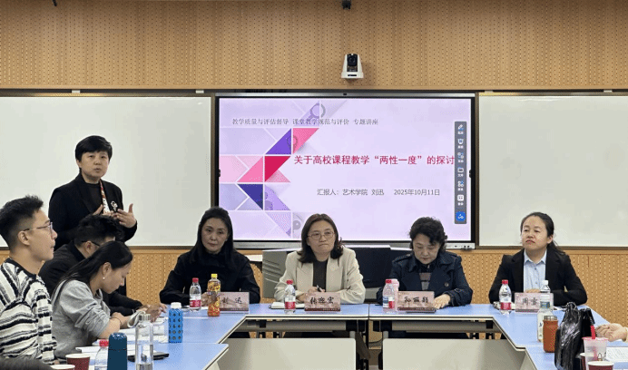 教学质量评估中心主任张迎宏以《教学质量与评估督导》为题,整体介绍了教学质量评估中心的职能与定位。孙丽颖、刘迅、周雪妍三位校级教学督导员分别围绕着《深挖课程思政元素、提升育人实效》《关于高校课程教学“两性一度”的探讨》《AI如何赋能课堂》三个主题,以各自学科为例,在课程思政融入、课堂高阶性建立以及现代化教学工具的运用等方面如何提升教学质量,对新教师提出了有益建议。
