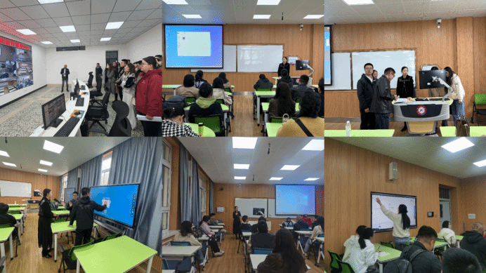 在教务处副处长郭海龙、多媒体教室管理员苍松老师和相关技术人员的带领与指导下,新教师们参观了现代信息化教学中心的“远程互动教室”“多屏研讨教室”等智慧教学场地,学习了智慧教学可视化管理平台、多功能教室、互动交流自主学习空间、教室信息化辅助功能配置等的使用及各种多功能教室的功能及使用操作方法。