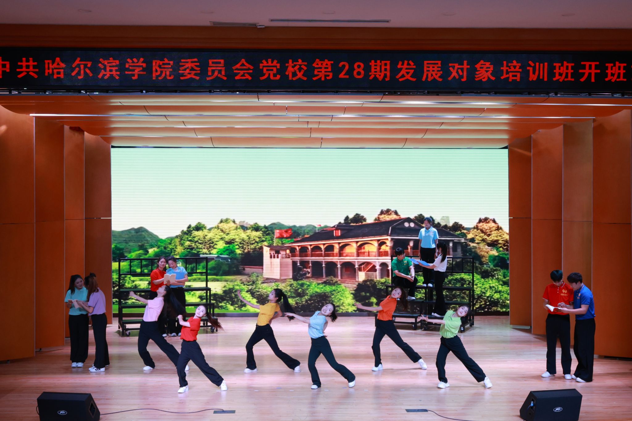 开班式上,学员代表、教师党员李铁秀、孙英杰共同表演情景诗朗诵《我们为什么纪念》,将思政引领与表演艺术创新融合,以青年人喜闻乐见的“艺术思政”育人模式,引导学员们深切感悟东北抗联精神内涵,从中汲取奋进力量,让东北抗联精神在新时代绽放新的光芒。