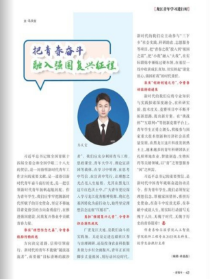 (文/黄婷婷)近日,《新青年》杂志2025年10期正式出版,我校学子马天宝撰写的《把青春奋斗融入强国复兴征程》一文,成功入选本期“龙江青年学习进行时”版块,以青年视角传递投身强国事业的青春之声,彰显我校学子的使命担当与时代情怀。