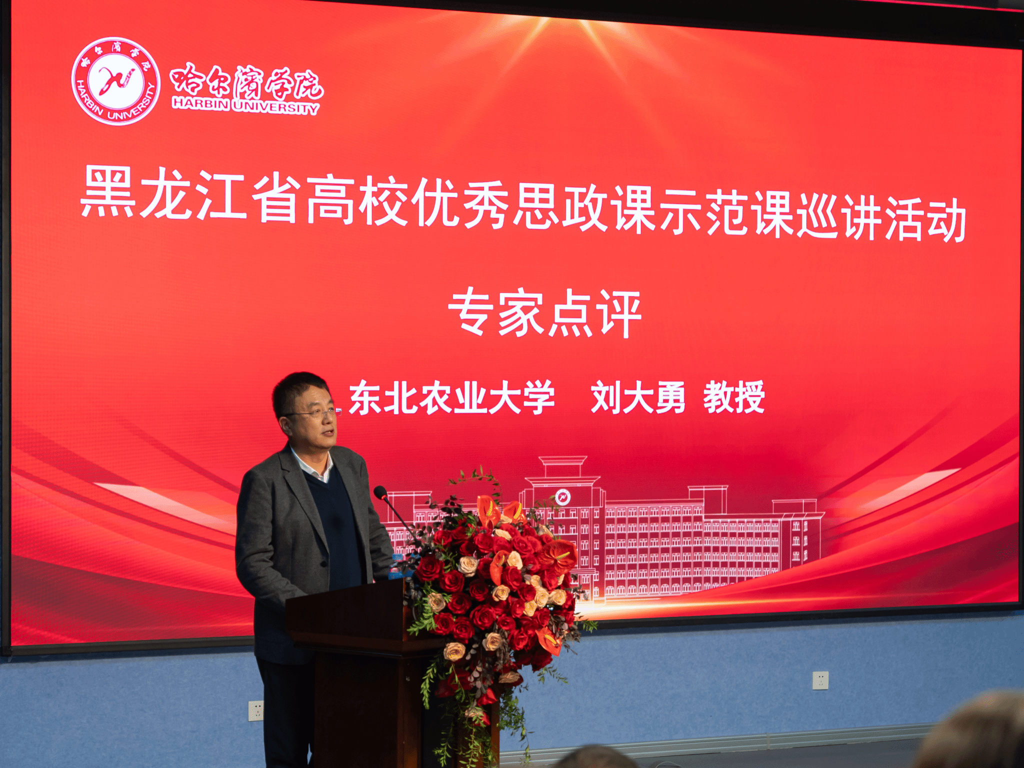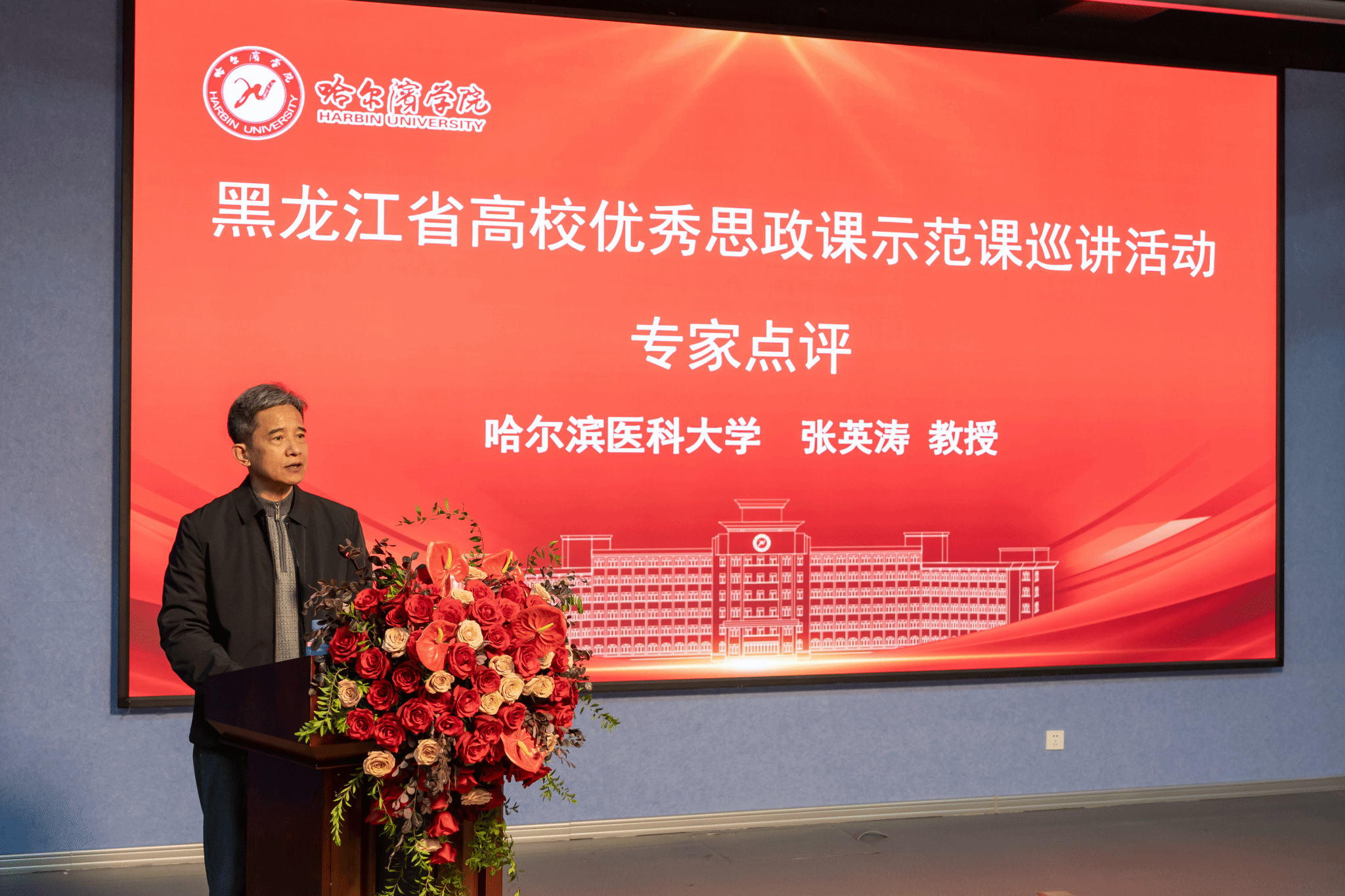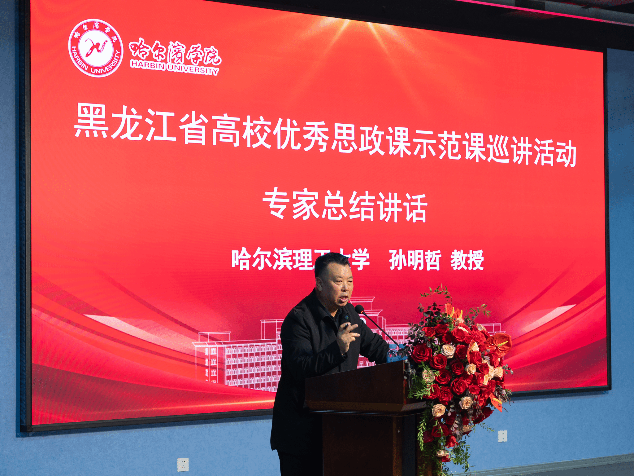 黑龙江省高校思政课《马克思主义基本原理》教指委主任孙明哲教授作总结讲话。他用“精彩、精准、经典”三个特点高度评价本次巡讲活动,并从三方面提出要求:一是希望思政课教学以问题为导向,结合学情,增强学生关切问题与课程内容的关联度;二是希望教师将党的创新理论与改革开放以来的成果有效融入课堂,持续推动课程创新;三是坚持思想政治理论课改革创新中的“八个相统一”原则,实现教向学的转变。