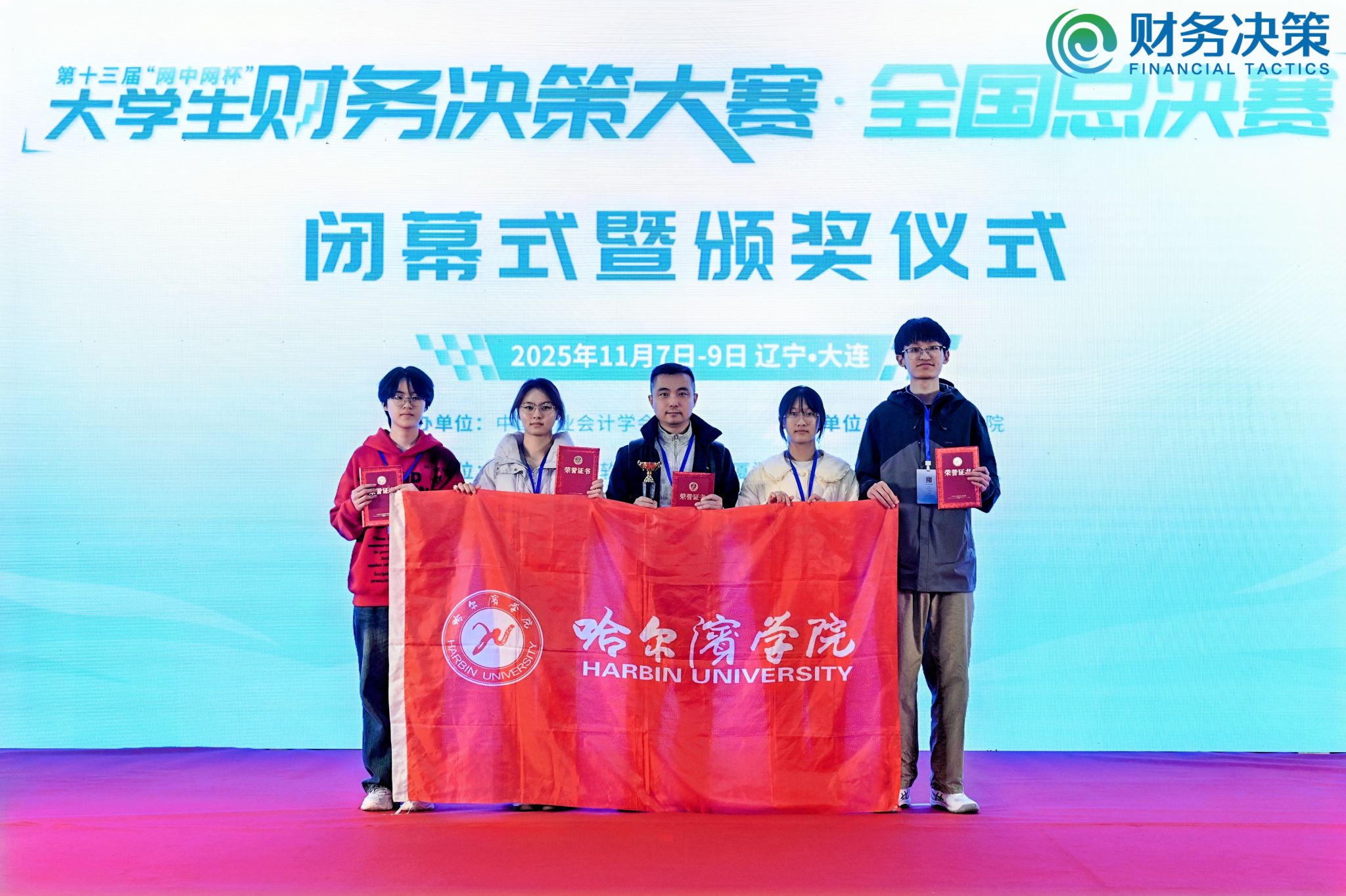 (文/初有为)2025年11月8日,第十三届“网中网杯”大学生财务决策大赛全国总决赛圆满收官。学校代表队在经济管理学院财务管理专业主任初有为的指导下,由陈子涵、王廷月、何雪、夏煜颖四位同学组成,表现卓越,勇夺全国总决赛一等奖,延续了我校在该项赛事中的辉煌战绩。此前,该团队先后斩获全国预选赛与省级比赛第一名,实现本届赛事“全满贯”的优异成绩。