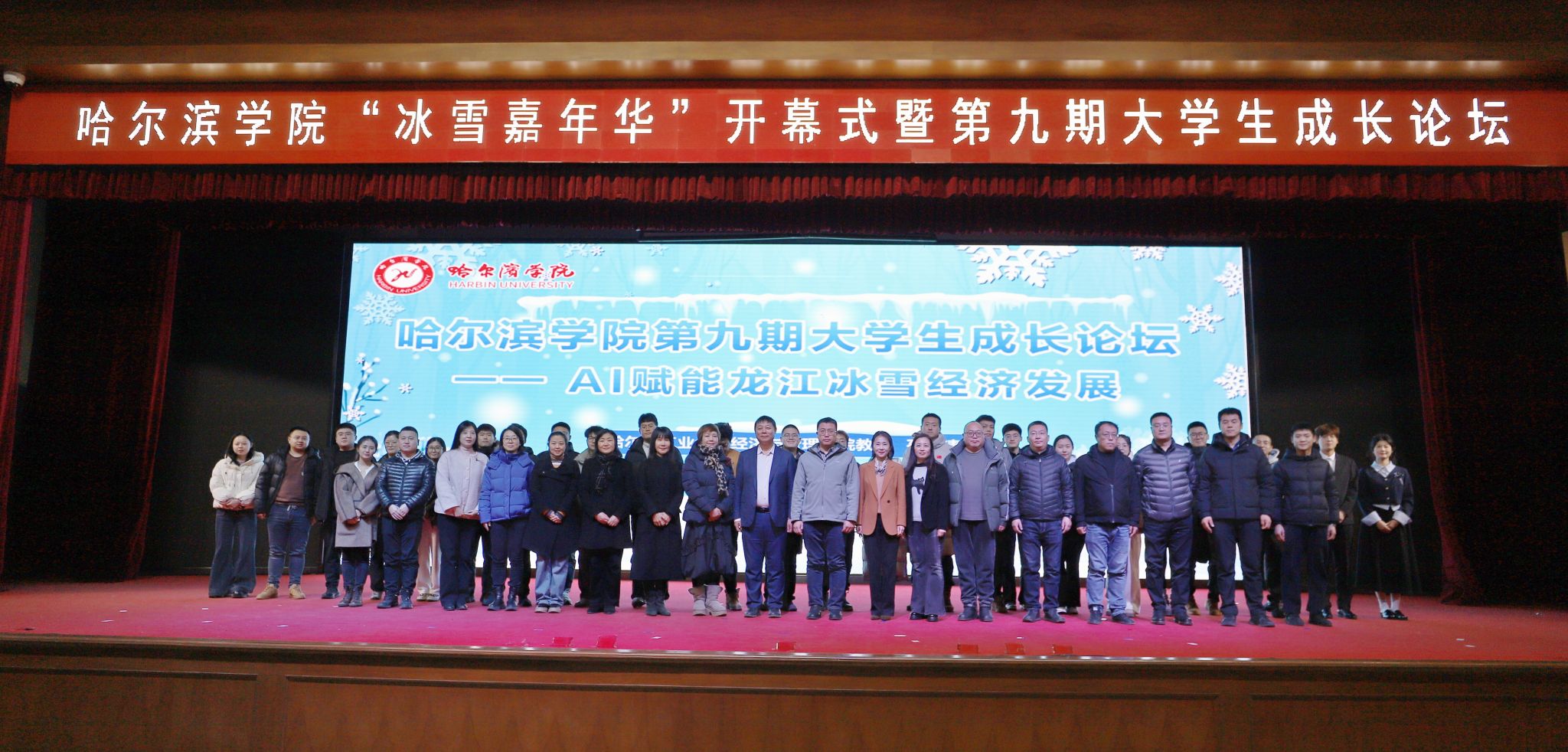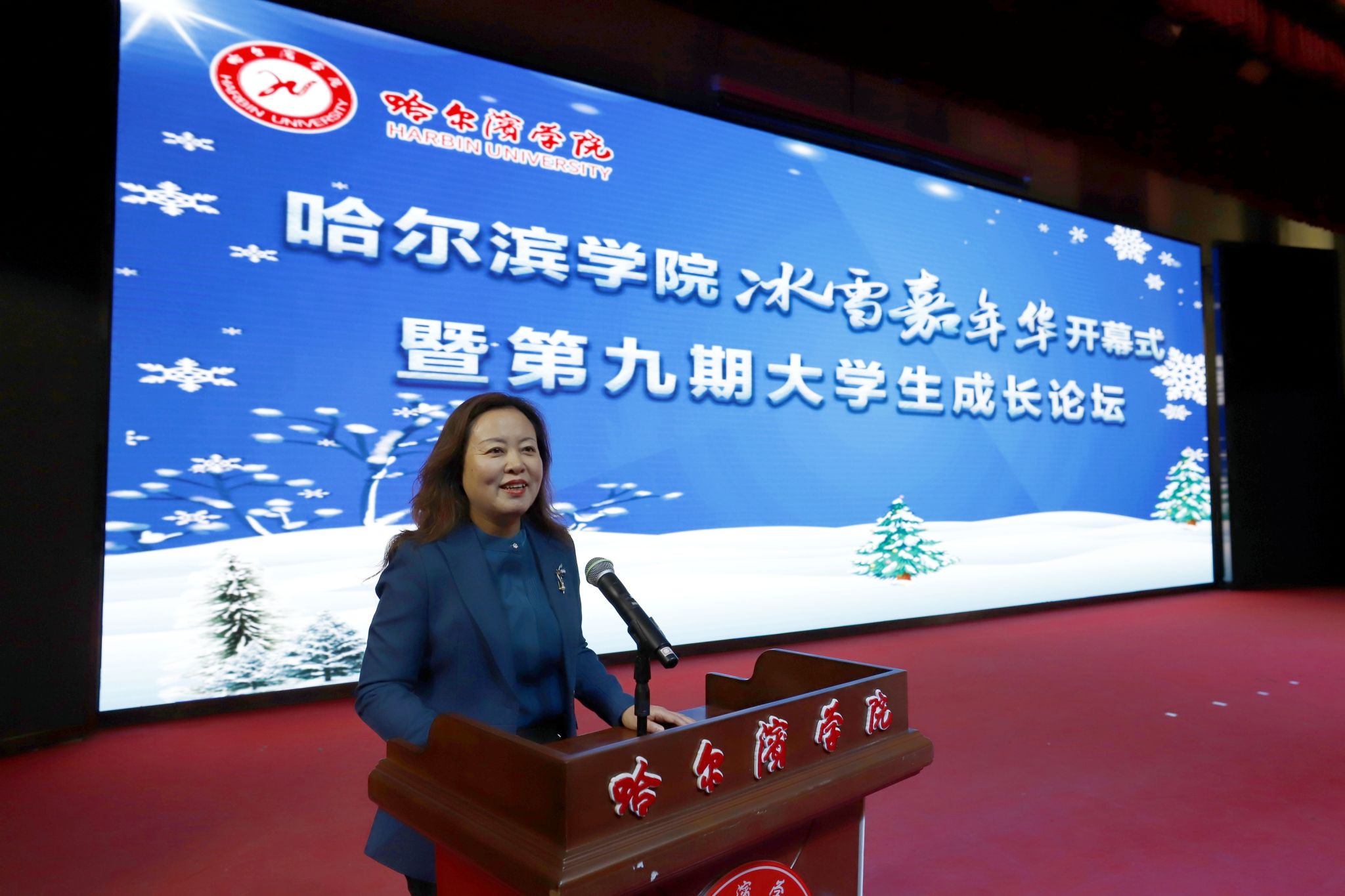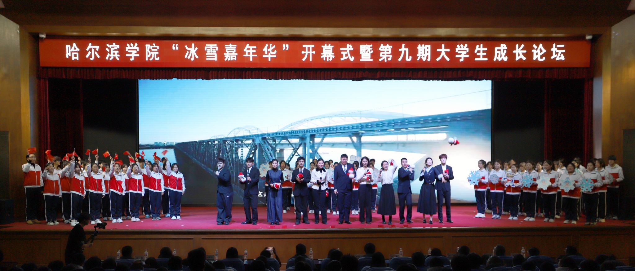 (文/张满)11月20日,学校在图书馆报告厅举办哈尔滨学院“冰雪嘉年华”开幕式暨第九期大学生成长论坛。校领导李娜、吴旭峰出席活动。相关职能部门负责人,音乐与舞蹈学院、艺术与设计学院、经济管理学院、体育学院、人工智能学院党政领导,全体辅导员、师生代表参加活动。