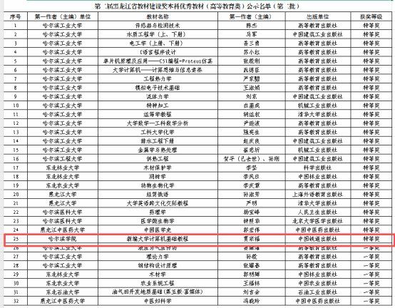 (文/王镜然)近日,第二届黑龙江省教材建设奖评选结果正式揭晓,由我校人工智能学院贾宗福教授担任主编的高等教育类教材荣获本科优秀教材特等奖。此项殊荣的获得,标志着我校在高等教育教材研发与建设领域取得了突破性进展,充分体现了学校在教材建设方面的学术水平和创新能力。