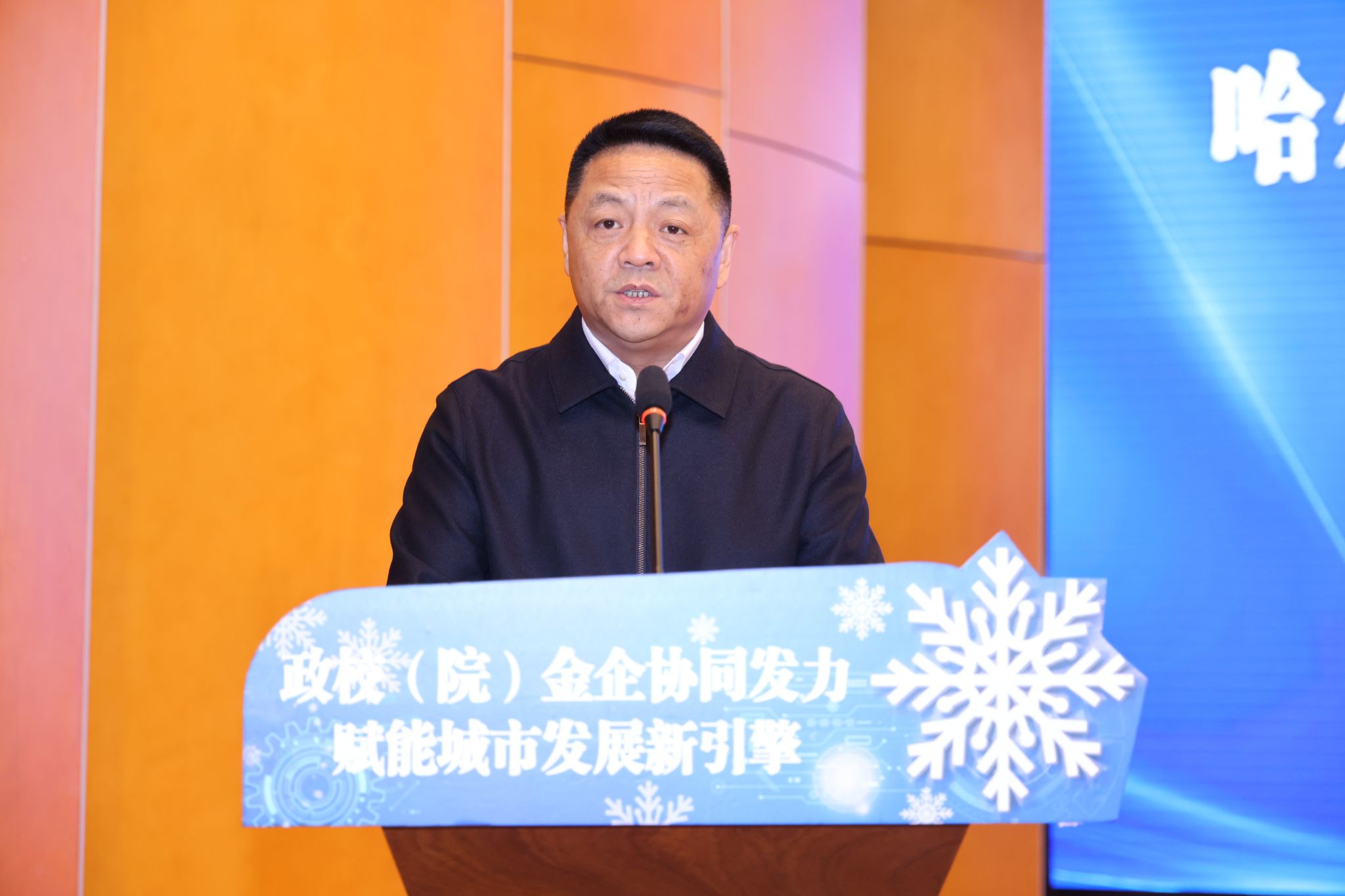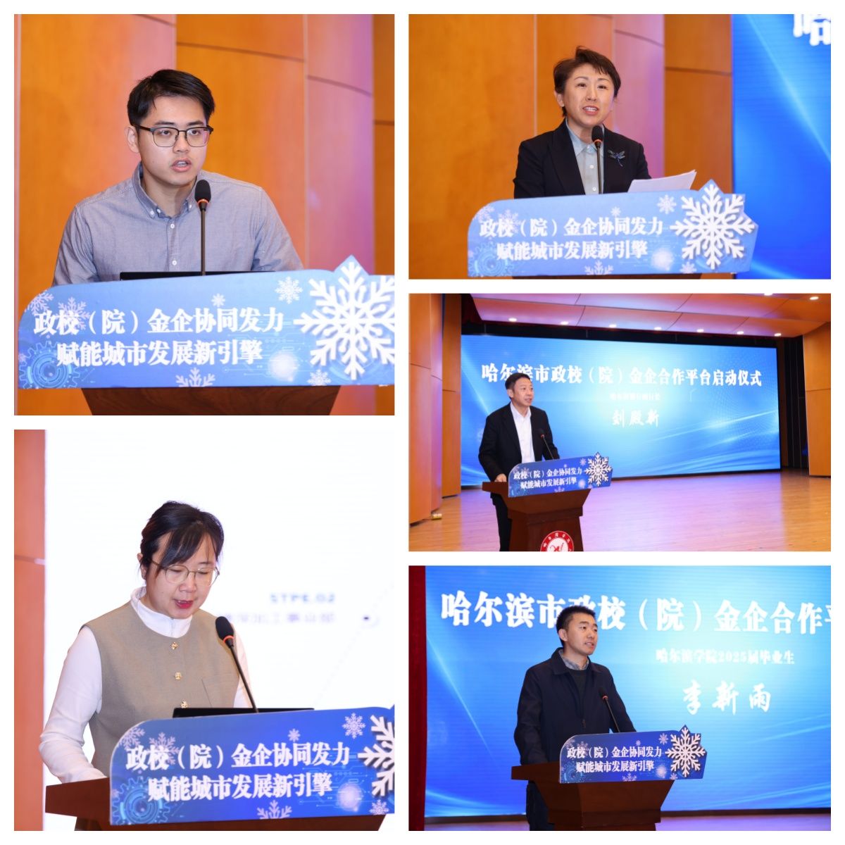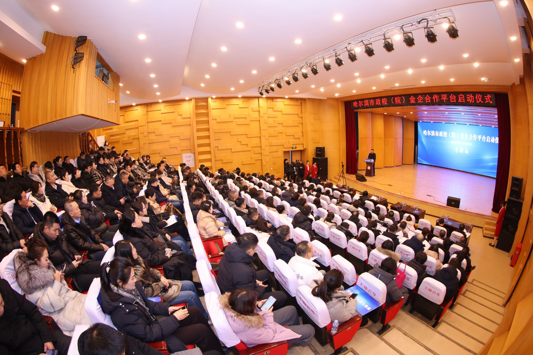 为持续推进政校企深度合作,多方位开拓毕业生就业渠道,搭建就业平台,12月26日上午,学校联合哈尔滨市工商联共同举办“哈尔滨市政校(院)金企合作平台启动仪式”。市政协副主席、市工商联主席徐伟,校长于成学,市委统战部副部长、市工商联党组书记车永辉,校党委副书记李娜,市委军民融合办副主任滕长平,市工信局副局长韩冰,市科技局副局长杜刚,市教育局副局长邓向伟,哈尔滨银行副行长刘殿新,市农科院副院长于清涛出席。市发改委、市人社局、市金融局等委办局部门领导,哈尔滨工业大学、哈尔滨工程大学、东北林业大学、东北农业大学、哈尔滨理工大学等省属、市属高校以及科研院所等47家单位的领导,中国银行、工商银行、建设银行、邮储银行等14家金融机构的领导,商协会会长及企业家等近200人参会,共同见证这一服务地方经济高质量发展的重要时刻。