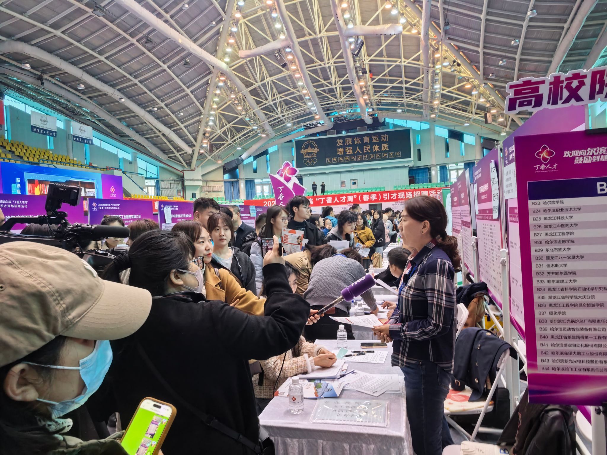 招聘现场,我校宣传展位前人头攒动、气氛热烈。工作人员以专业精神和耐心态度接待超100人次咨询,高效完成25名博士高层次人才洽谈工作,展现了精准引才服务能力。哈尔滨电视台新闻频道对我校引才洽谈工作进行全程报道,生动呈现了学校在党委坚强领导下,通过多部门协同发力实现影响力、知名度、美誉度持续提升的引才成果。2026届近100名毕业生手持精心准备的简历穿梭于各企业展位间,主动对接岗位需求、精准匹配专业方向,学生良好的实践能力与综合素质获得多家企业认可,现场即获复试邀约。这一场景深刻印证了我校应用型人才培养模式的显著成效,实现了人才培养与产业需求的高度契合,形成“课程对接产业、育人联动企业”的良性循环,不断为区域经济社会发展输送“用得上、留得住、干得好”的高素质应用型人才。