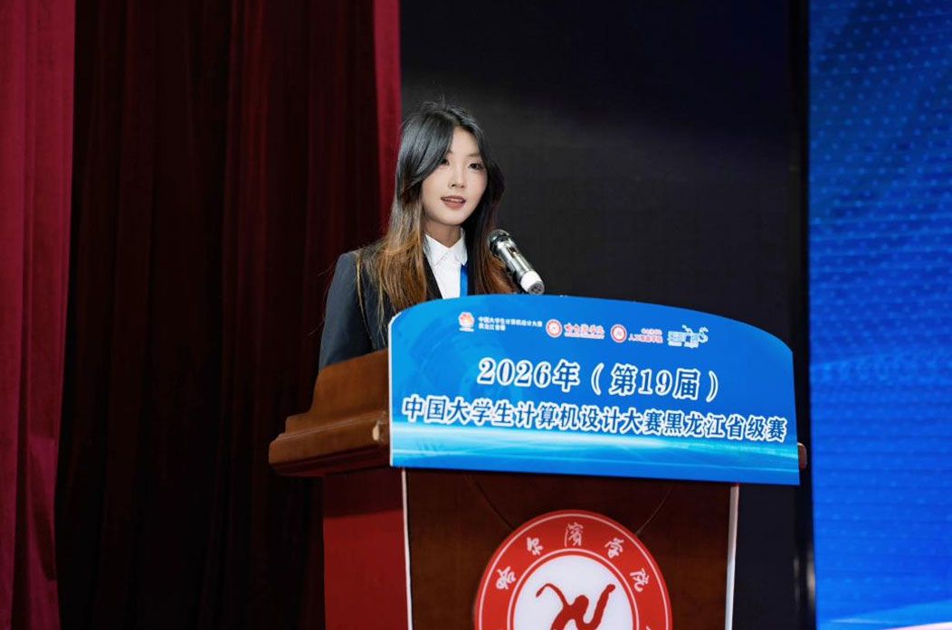 吴熙充分肯定我校承办工作与办学成效。她指出,哈尔滨学院立足应用型本科定位,紧扣龙江数字经济发展需求,在信息技术人才培养、实践教学改革上成效突出。本届赛事坚持“以赛促学、以赛促教、以赛促创”,在助力学生成长成才、促进高校内涵发展等方面发挥了重要作用。赛事的高质量举办充分彰显了我校服务全省教育发展、赋能龙江数字经济建设的责任与担当。