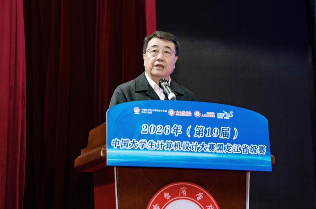 于成学向莅临大赛的各位领导、专家致以诚挚问候,向关心支持赛事的各界友人表示衷心感谢,向全体参赛选手致以热烈欢迎。他强调,高水平学科竞赛是淬炼创新思维、厚植科创素养、锤炼攻坚能力的重要抓手,更是革新人才培养模式、夯实人才供给根基、以人才赋能高质量发展的关键举措。本次赛事不仅为青年学子精进专业本领、展示科创成果搭建了广阔舞台,也为校政企协同联动、交流互鉴、共谋发展构筑了优质平台。作为东道主,哈尔滨学院将切实扛起主场责任,全力做好服务保障,为赛事圆满举办保驾护航。