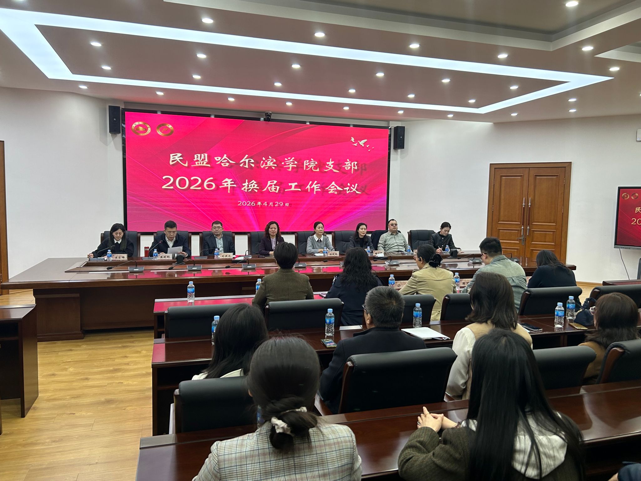 (文/迟云艳)4月29日,民盟哈尔滨学院支部2026年换届工作会议在学校党政办公楼404室召开。民盟哈尔滨市委主委孙凤玲、副主委程立华,哈尔滨学院党委副书记李娜出席会议。民盟哈尔滨市委职能部门、哈尔滨学院党委统战部相关负责同志及民盟哈尔滨学院支部全体盟员参加会议。会议由支部主委莫延利主持。