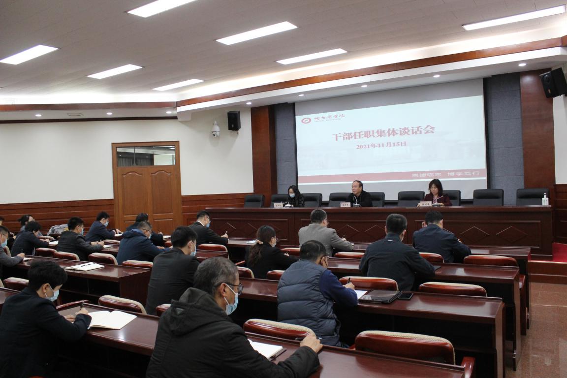 11月15日上午,学校召开干部任职集体谈话会。校党委书记冯延平、党委副书记张鸿雁、纪委书记马弘莉出席谈话会。本次调整交流干部、新选拔任用干部及相关单位部门党政负责人共38名同志参加谈话会。张鸿雁主持会议并宣布了干部任职决定,冯延平代表党委作集体谈话和廉政谈话。
