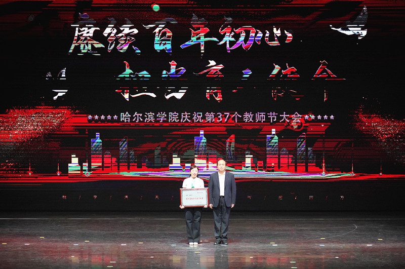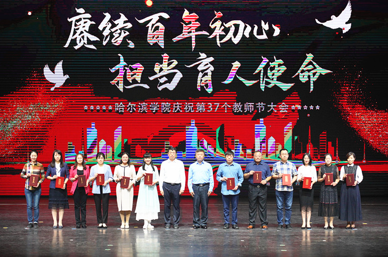 表彰大会上,校领导为获得哈尔滨学院第四届师德师风先进个人、优秀教师,哈尔滨学院第四届教学贡献奖、科研贡献奖、管理贡献奖,哈尔滨学院第四届教学突出贡献奖、科研突出贡献奖获得者颁发荣誉证书。受表彰的老师们满怀幸福喜悦的心情,在全场热烈的掌声中上台领奖。哈尔滨芭蕾舞团、音乐与舞蹈学院、大学生合唱团为教师献上了精彩的文艺节目,表达诚挚的节日祝福。
