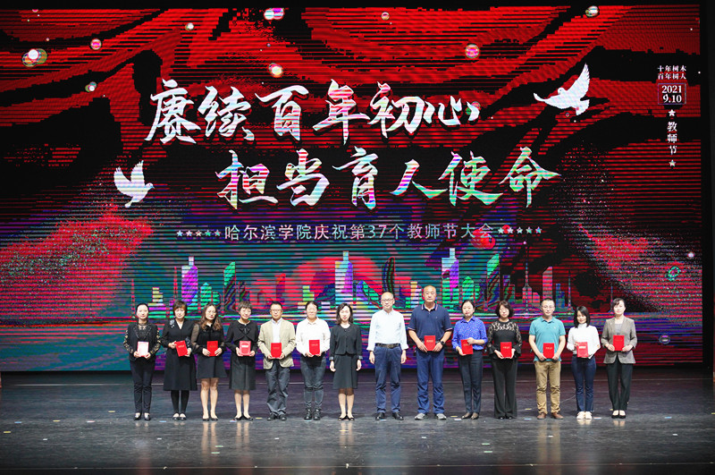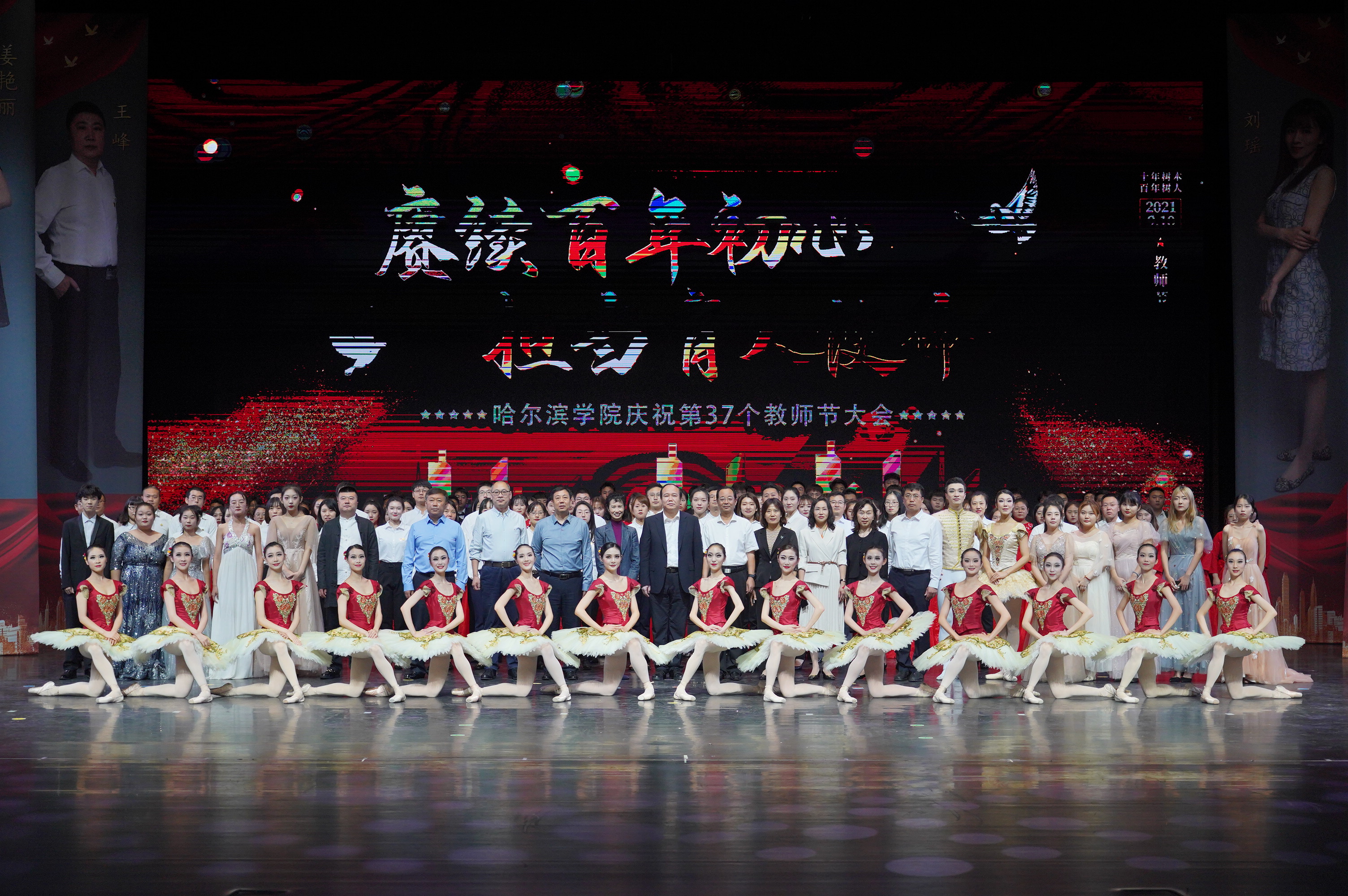 赓续百年初心,担当育人使命。9月10日下午,在全国第37个教师节来临之际,我校庆祝2021年教师节大会在丁香剧场隆重举行。党委书记冯延平、校长胡宝忠、党委副书记张鸿雁、副校长孙红镱、纪委书记马弘莉、副校长宋国利、工会主席陈威、副校长于少鹏、副校长吴旭峰和哈尔滨芭蕾舞团团长张丹丹出席大会。获表彰教师代表、各学院教师代表、各职能部门负责人、学生代表参加大会。