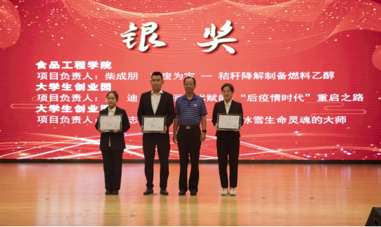 副校长孙红镱、校纪委书记马弘莉为荣获第六届中国国际“互联网+”大学生创新创业大赛省级铜奖团队颁奖