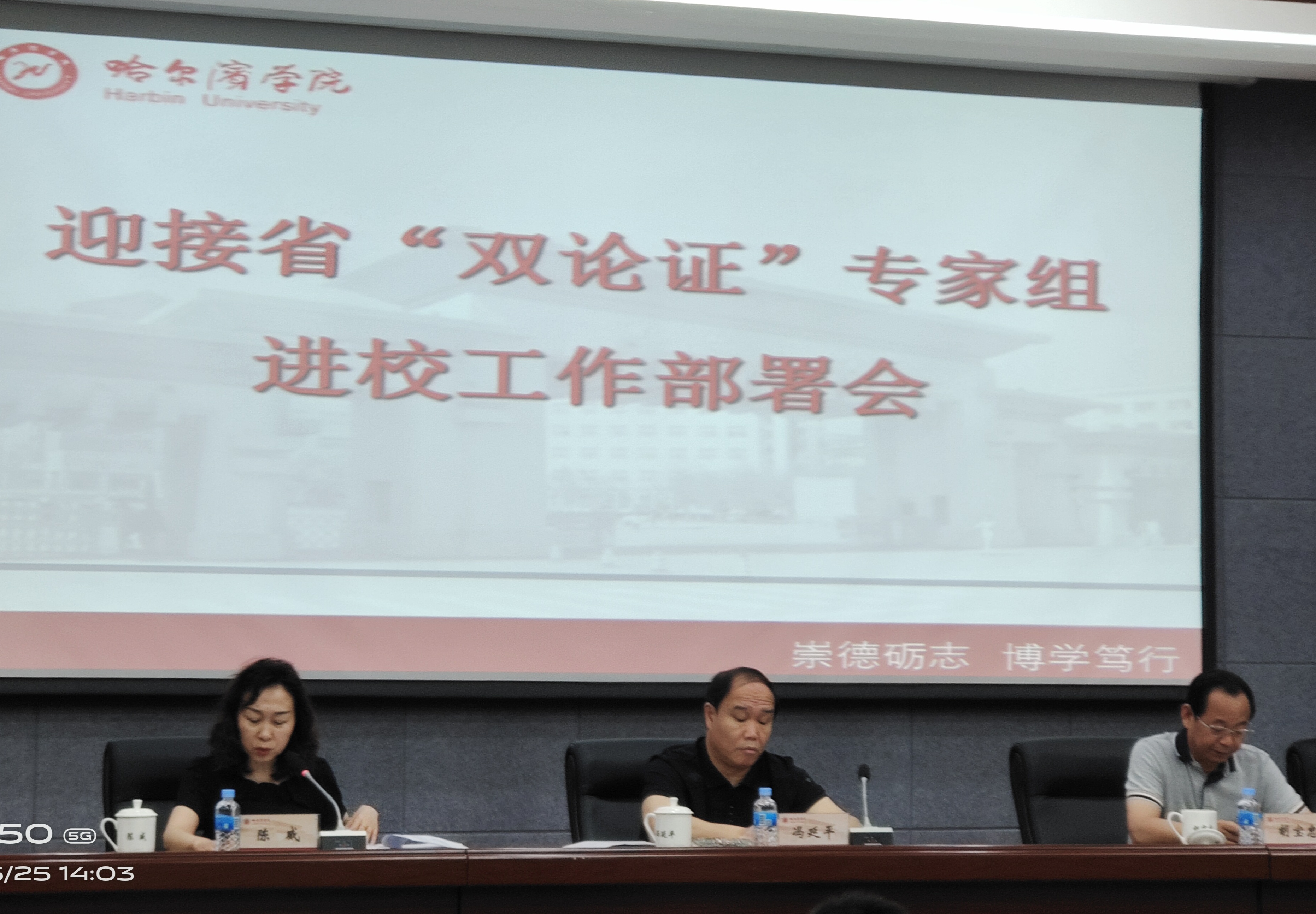 校党委书记冯延平强调:一是要充分认识开展“双论证”工作的重要性。通过实施“双论证”工作,引导各学院、各部门深入思考人才培养战略定位,从专业设置、专业结构调整、专业发展规划、专业集群建设等方面进一步推进专业结构优化,从生存与发展、人才培养历史沿革、人才培养与社会需求契合度等方面充分认识“双论证”工作的重要意义。通过实施“双论证”工作,围绕“为谁培养人、培养什么样的人、怎样培养人”,进一步明确人才培养服务领域定位、人才培养类型和规格定位、人才培养模式定位,打造一批符合学校发展目标定位和市场需求的国家级、省级“一流本科专业”和特色专业,切实提高人才培养质量。通过实施“双论证”工作,学校全面总结“十三五”时期办学成就,科学谋划“十四五”发展方向,做好顶层设计,树立特色发展、集群化发展思想,明确专业建设规划,有针对性地破解专业趋同、特色不突出等问题,更好地服务“五大安全”战略和“六个强省”建设,实现“七校”发展战略目标。二是要高效推进“双论证”工作走深走实。在推进“双论证”工作的深入发展和落实过程中,各职能部门、各二级学院要坚持产出导向,准确把握“双论证”工作的基本内涵,找准产业结构和专业结构的映射关系,围绕产业链或细分领域建群,实现专业群与产业链或岗位群有效对接,凝聚发展合力,推进专业集群发展,明确专业发展规划,建立专业动态调整机制;要按照学校总体部署和安排,主动思考、明确分工、协调配合、群策群力,针对“双论证”暨学科专业一体化建设出真招、出实招,踏踏实实、认认真真地拿出切实可行的改革措施,加快推进“双论证”和学科专业一体化建设落地;要抓住关键点,做好工作流程。要校、院两级联动,相关职能部门要梳理关键节点与工作范式,为各学院更好开展工作提供帮助;各学院要发挥主体作用,高效务实推进工作。三是要圆满完成专家组进校评估各项任务。学校相关职能部门及各学院、专业要统一思想、高度重视、求真务实、担当作为、协同发力,将“双论证”工作作为一把手工程来加以推进,突出重点、把握关键,扎扎实实推动“双论证”工作落实落靠、取得实效;要按照省教育厅专家组进校论证的《通知》要求,在专家组进校前的这段时间里再加一把劲,力争做到“立足本职、尽善尽美、强化学习、熟悉内涵、把握关键、注重细节”,打好最后的攻坚战;要为专家进校做更充分的准备和科学的安排,要精心组织,确保专家进校考察工作组织有序;要文明自信,展现出哈尔滨学院师生的良好精神风貌,争取以优良的成绩顺利通过“双论证”。
