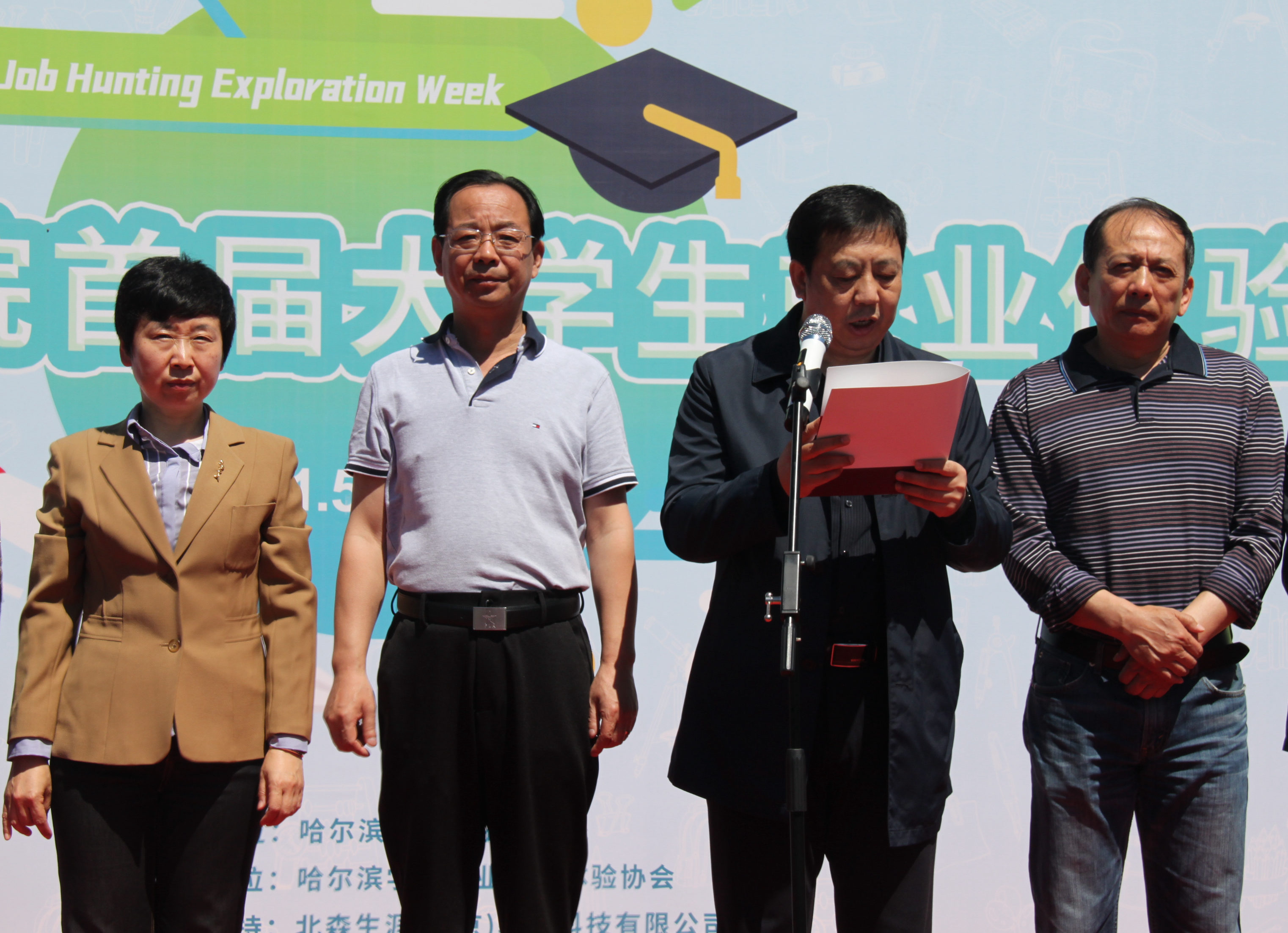 经济管理学院步桐博同学代表参加就业体验周的学生发言。经济管理学院、地理与旅游学院、体育学院、食品工程学院的学生代表参加了就业体验周的启动仪式。