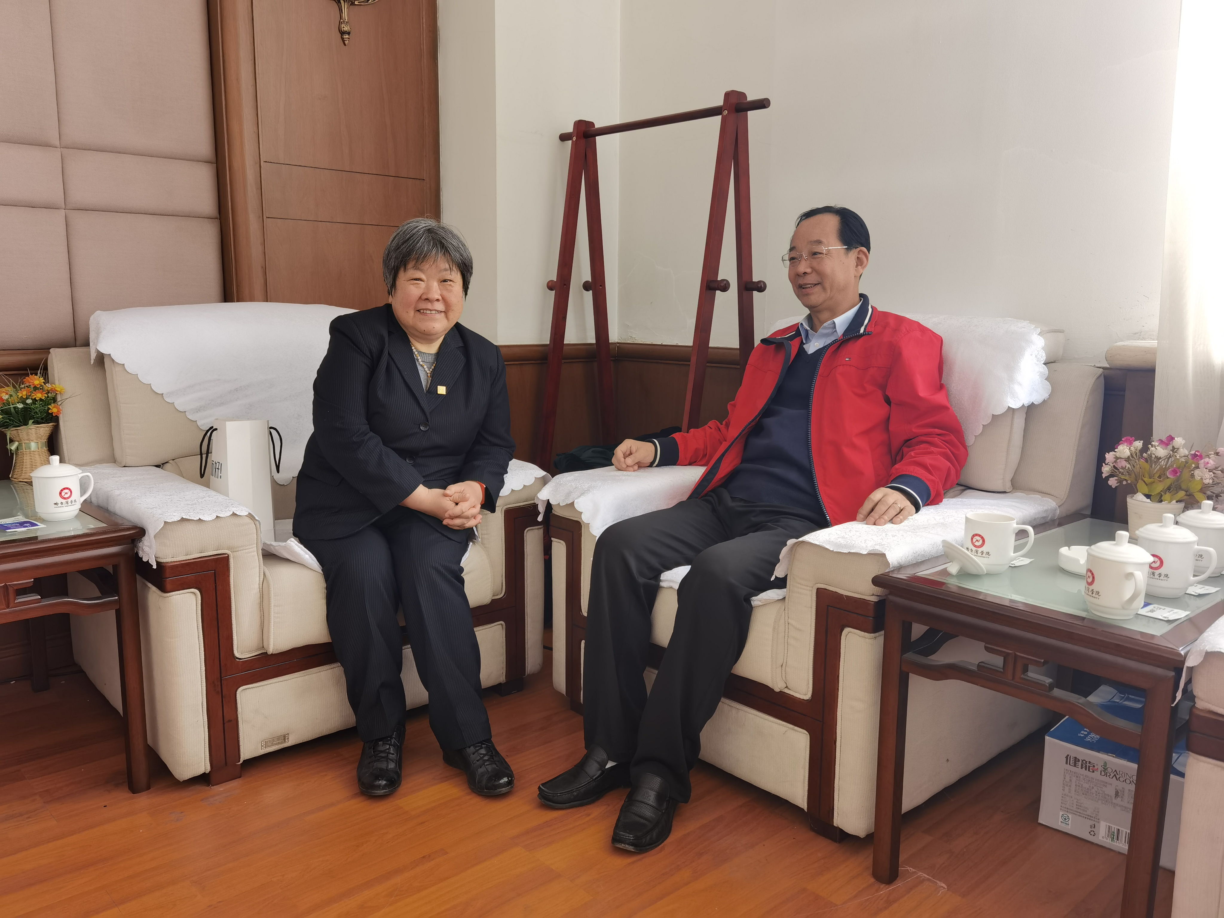 校长胡宝忠、党委副书记张鸿雁、副校长吴旭峰与邱丽莉教授进行了交流座谈,并陪同邱教授参观了学校心理发展中心。新东方哈尔滨学校副校长何军全程参加报告会。