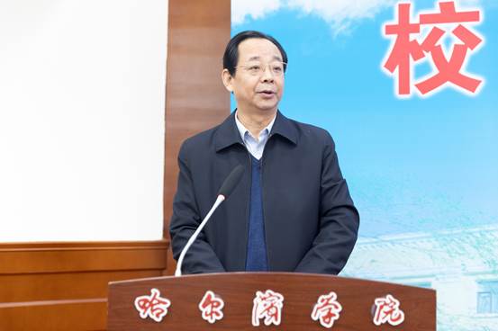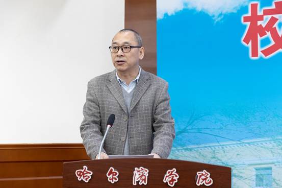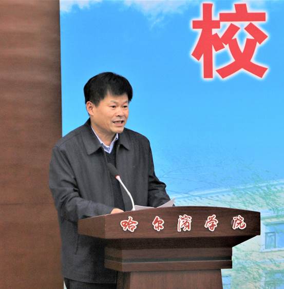 校长胡宝忠代表学校讲话,首先,对参加签约仪式的省住建厅领导、省寒地建科院领导及各位专家表示衷心的感谢;对省寒地建科院与哈尔滨学院战略合作协议的签署,黑龙江寒地绿色城区设计研究中心及中心学术委员会的成立表示热烈的祝贺!指出哈尔滨学院自2000年建校以来,紧紧围绕省、市经济和社会发展要求,秉持“融合共生,建设城市大学,培养应用型人才”的办学理念,坚持“地方性、应用型”办学定位,积极推进转型发展,努力改革创新,突出办学特色,着力提高办学层次,办学能力和办学水平。学校土木建筑工程学院立足工程一线应用型人才培养,多年来土木工程、城市地下空间工程和建筑电气与智能化等专业在寒区工程技术人才培养和科学研究方面投入了较大人力、物力,积累了一定的经验。省寒地建科院在寒区基础理论研究与工程技术服务方面处于全国领先地位,拥有冻土科学等优势技术团队;拥有博士后科研工作站、寒地建筑工程技术研究中心等科研学术创新平台。学校与省寒地建科院正式签署战略合作协议,标志着校院深度合作上迈出了关键一步,开启了双方合作发展、共建发展、互融发展的崭新篇章。本着“优势互补、资源共享、互惠双赢、共同发展、服务地方经济”的原则,校院双方将共建综合素质高、实践经验丰富的师资队伍,搭建科研平台,共建研究中心。我们相信,通过校院的真诚合作,共同努力,一定能实现优势互补,达到“双赢”。一定能把研究中心建设成为特色鲜明、质量一流的高水平人才培养基地,为我省市经济社会发展做出新的更大贡献。