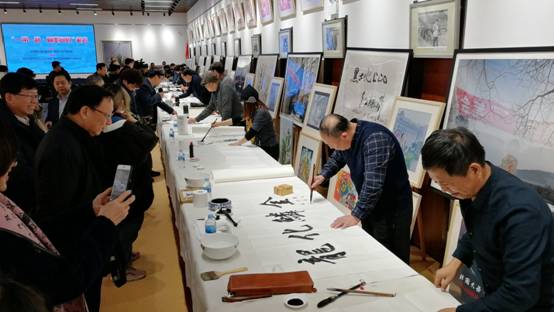 交流会上,两地知名书画家汇聚一堂,挥毫泼墨、现场创作,为弘扬中国传统文化、促进两市文化经济合作与发展深入交流、积极互动。哈尔滨市美术家协会主席董晓泮、哈尔滨市书法家协会副主席孙国辉等二十多位书画家参加了活动。