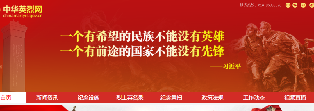 方法2:登录退役军人事务部网站(网址:http://www.mva.gov.cn/),点击进入烈士英名录→选择烈士名录→祭扫烈士→点击右侧祭拜、献花、敬酒、上香→在左侧留言处抒写寄语并点击发布。