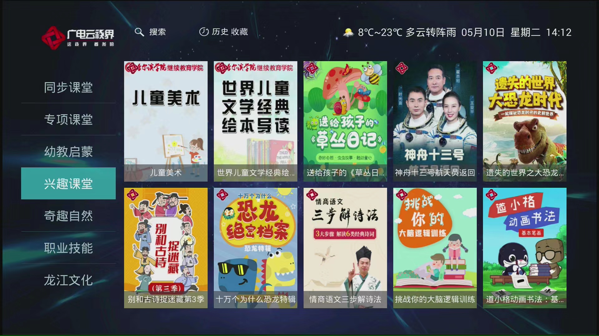 目前,由于龙江广电网络栏目调整及改版,将课程依据内容从“空中课堂”频道调整至“广电云视界”点播平台频道,具体调整如下:
