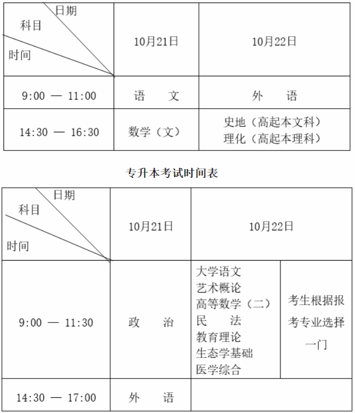 高起本、高起专考试时间表