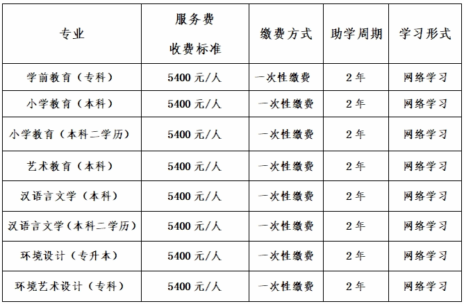 收费标准详见继续教育学院网站,上级规定如有调整,按最新标准执行。