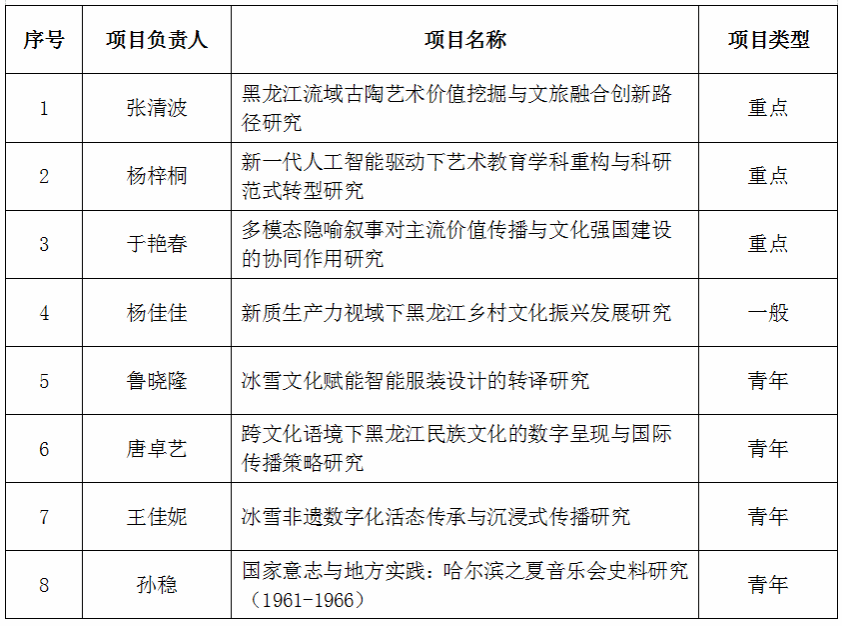 2025年度黑龙江省艺术科学规划项目立项一览表