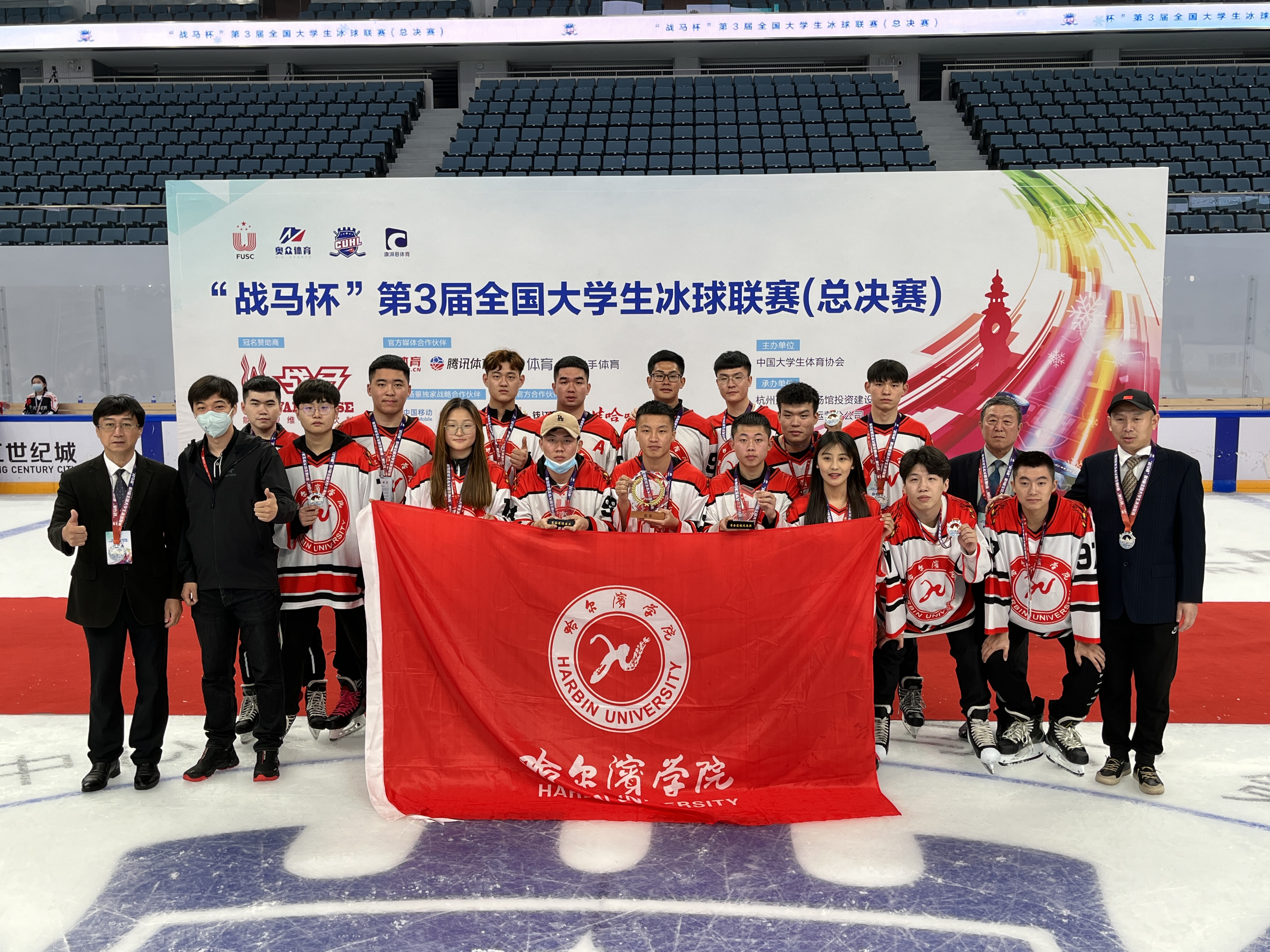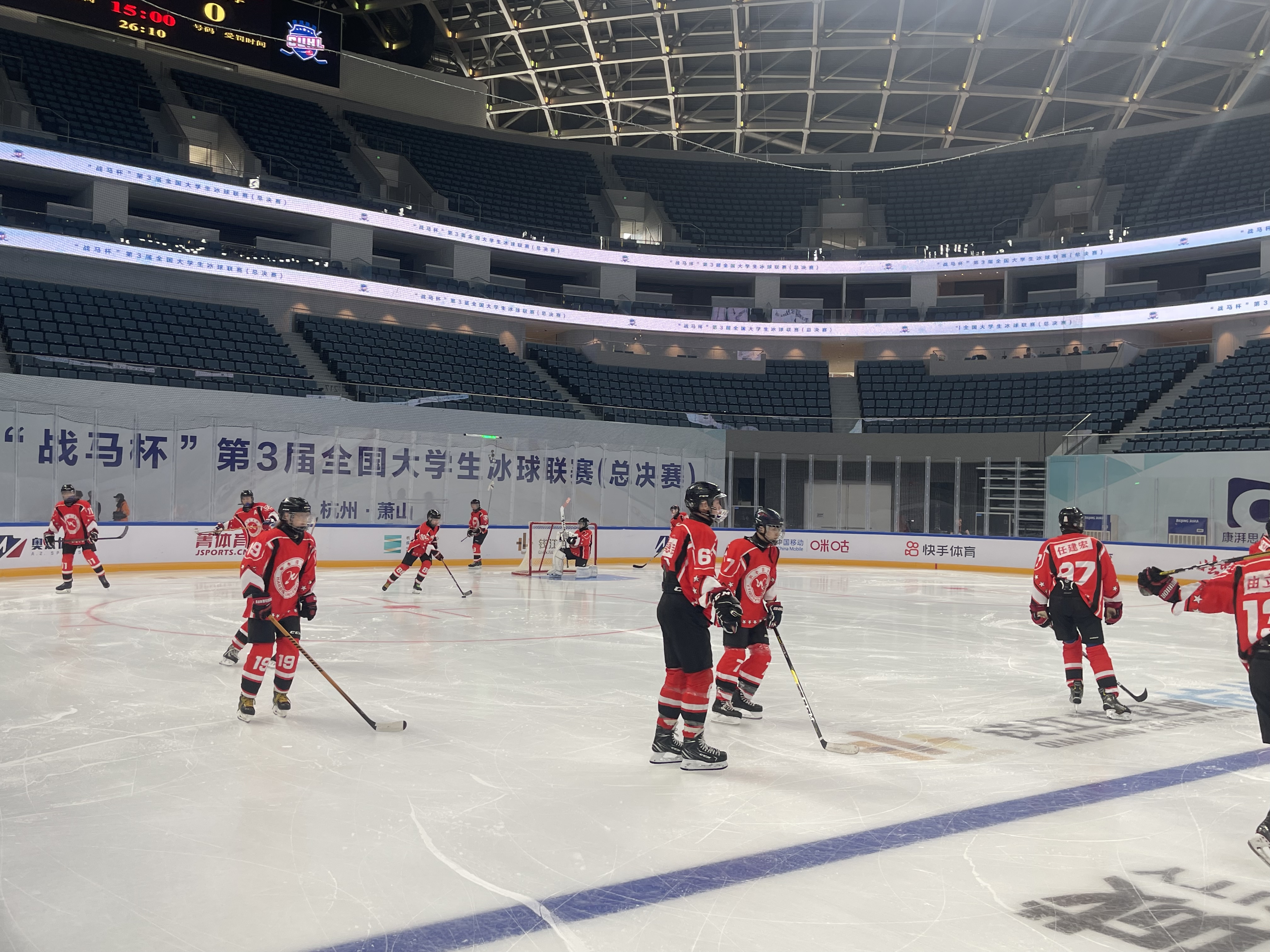 2022年3月11至15日,中国大学生体育协会主办的“战马杯”第三届全国大学生冰球联赛(总决赛)在杭州市举办,本次比赛共有来自全国12所高校的500多名运动员参赛,其中不乏北大、清华、人大、哈工大、北体大和哈体院等多所体育强校参加,我校体育学院冰球队第二次冰上出征,获得B组亚军。