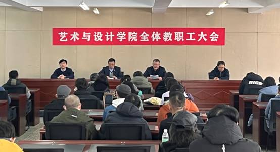 (文/鲁晓隆)3月1日下午,艺术与设计学院在四号教学楼4409会议室召开了2023年春季学期全院教职工大会。会前,召开了党政联席会议,向联系点领导、校纪委书记马弘莉汇报了工作,向艺术与设计学院党委委员征求了意见。