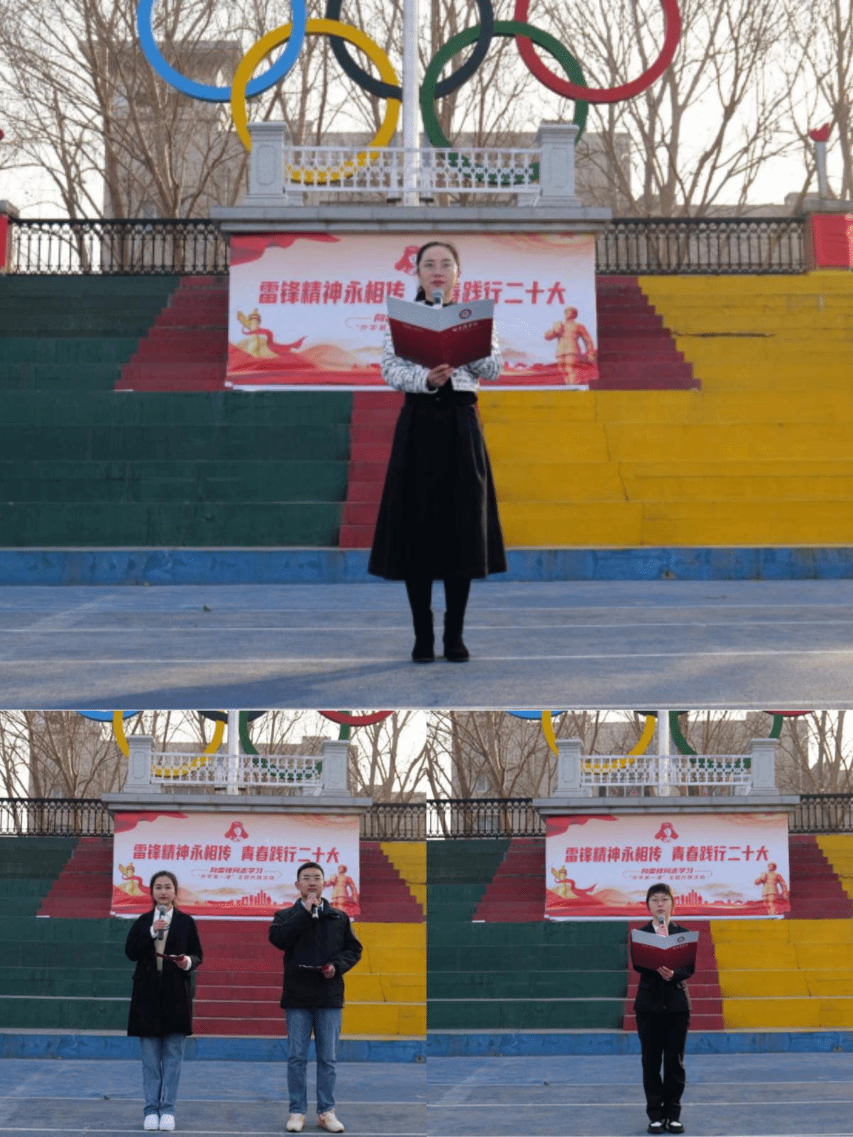 国旗下,学生和老师代表分别进行宣讲。用朗诵、讲述的形式将雷锋故事、雷锋事迹生动形象地展现在广大师生面前。激励同学们主动向雷锋同志学习,弘扬雷锋精神,树立家国情怀,培育“小我融入大我,青春献给祖国”的高尚品质,努力成长为担当民族复兴大任的时代新人。