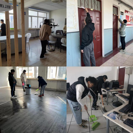 活动内容分为三项。首先组织全体同学参观我校创业园,通过参观园区廊道宣传板、实地到访园区企业和开展团队训练,深入了解创业园园区基本情况和园区特色,培养我校大学生创新精神和创业意识。第二项内容是全体同学自发组织对三号楼二层到四层的空余企业办公室、党员之家、机房等多个房间进行清理整洁消杀,同学们分工明确,秩序井然。最后,按照我校2023年安全工作会议要求,对园区内消防通道、灭火器等进行检查,及时更换安全防火负责人,建立详细安全管理台账,确保园区安全不留死角,织密“平安创业园”网络。