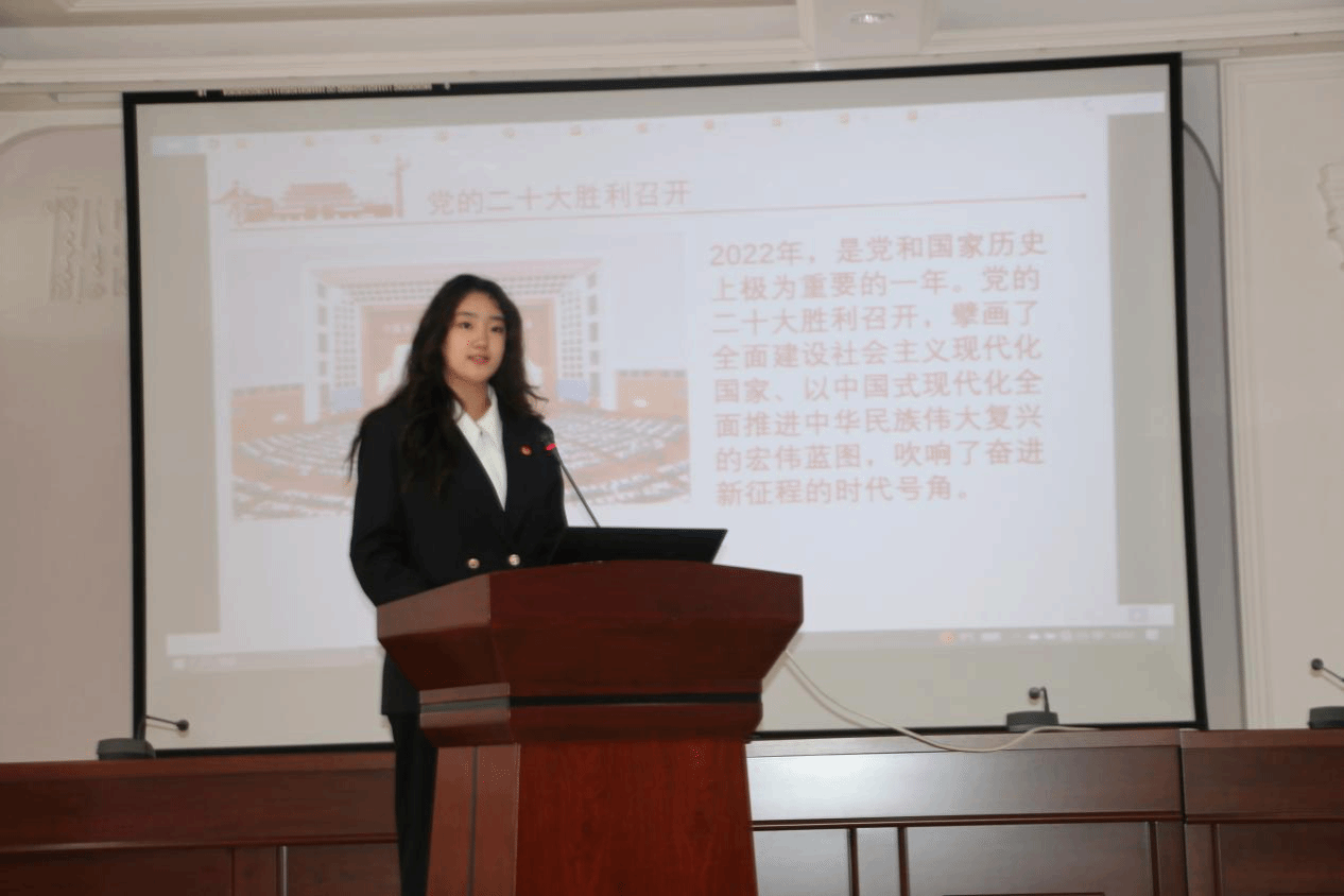 宣讲会上,我校孙文喆、王玺越两位同学结合自身学习宣传贯彻党的二十大精神实践,以青年视角对党的二十大精神进行青年化阐释。号召广大青年坚定不移听党话、跟党走,怀揣梦想又脚踏实地,以实际行动践行“请党放心 强国有我”的青春誓言。